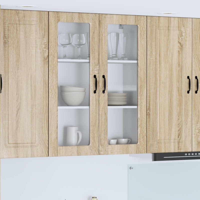 Dieser Holz-Küchenwand-Schrank kombiniert stylishes Design mit praktischer Funktion und ist eine super Ergänzung für jede Küche. Der Schrank aus Holzwerkstoff hat eine moderne Optik mit klaren Linien und ist perfekt für alle, die einfache Eleganz lieben. Sein schlankes Aussehen sorgt dafür, dass alles ordentlich und einladend aussieht. Er passt zu verschiedenen Küchenstilen und bringt sowohl Nutzen als auch Charme mit. Egal, ob du Küchengeräte oder Deko unterbringst, das coole Design macht deinen Kochbereich übersichtlich und attraktiv für den alltäglichen Gebrauch. Materialien: Der Küchenschrank besteht aus hochwertigem Holzwerkstoff, der stark und schön ist. Das Holz wurde behandelt, um Feuchtigkeit standzuhalten, was es perfekt für die Küche macht, wo immer mal was verschüttet. Die Oberfläche hält den täglichen Anforderungen stand und sieht dabei schick aus. Durch die präzise Verarbeitung hat der Schrank einen stabilen Rahmen, der sicherstellt, dass du deine Sachen ordentlich aufbewahren kannst. Inklusive Komponenten: Der Schrank hat robuste Regale, die genug Platz für Geschirr und Vorräte bieten. Jedes Regal ist aus hochwertigem Holzwerkstoff, was für Qualität und gutes Aussehen sorgt. Die nicht sichtbaren Rückwände sorgen für Stabilität und behalten das moderne, klare Design bei. So passt alles gut zusammen, ohne dass das Auge gestört wird. Merkmale / Funktion / Design: Mit dem Fokus auf Stil und Zweckmäßigkeit fügt sich das minimalistische Design in verschiedene Küchen ein. Er eignet sich nicht nur für moderne, sondern auch für traditionelle Küchen und bietet eine flexible Lösung für die Aufbewahrung. So bleibt alles gut organisiert und für den täglichen Gebrauch griffbereit. Empfohlene Verwendung: Dieser Wandschrank ist ideal für den Gebrauch in Innenräumen, besonders in der Küche. Er kann für alles Mögliche genutzt werden, vom Platz für Kochbücher bis zur Aufbewahrung von Lebensmitteln. Seine zentrale Lage in der Küche sorgt dafür, dass alles leicht erreichbar ist. Das schicke Design sorgt dafür, dass er sich harmonisch in jede Küche einfügt und den funktionalen Bereich verbessert. Pflege und Wartung: Um den modernen Look zu erhalten, wisch die Oberfläche des Schranks mit einem feuchten Tuch ab. Vermeide aggressive Chemikalien, damit die Oberfläche schön bleibt. Regelmäßiges Putzen verlängert die Lebensdauer des Schranks und sorgt dafür, dass deine Investition in dieses wichtige Küchenmöbel sich länger auszahlt.