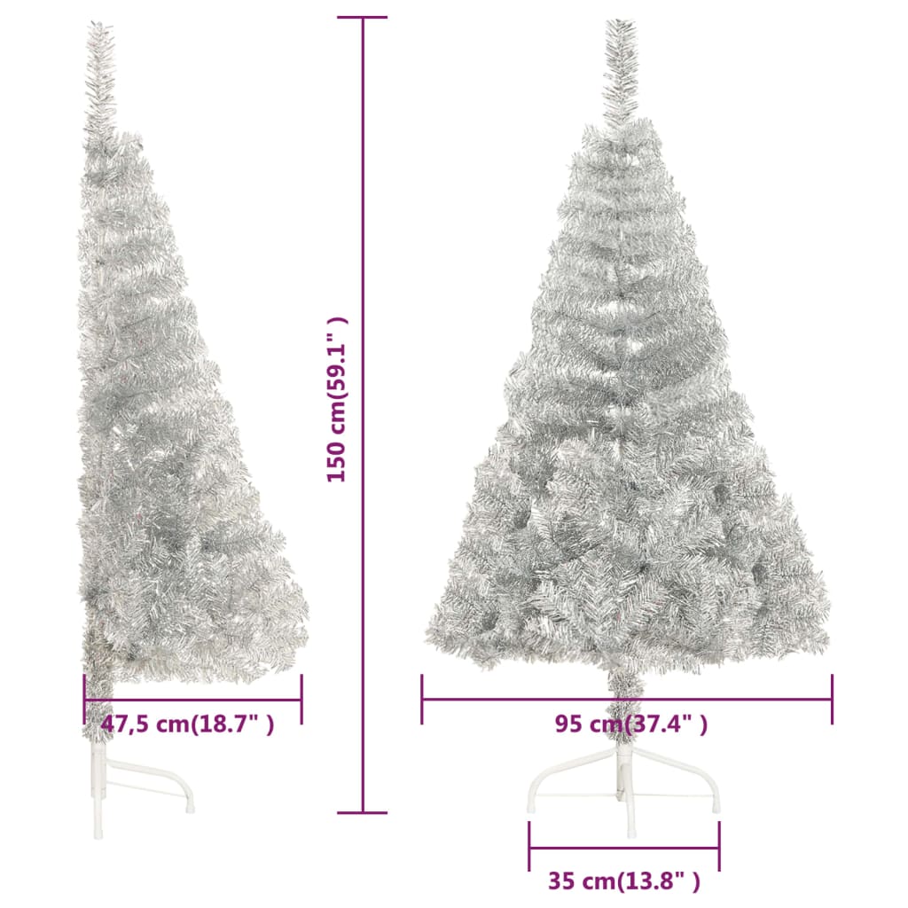 Künstlicher Halb-Weihnachtsbaum mit Ständer Silber 150 cm PET