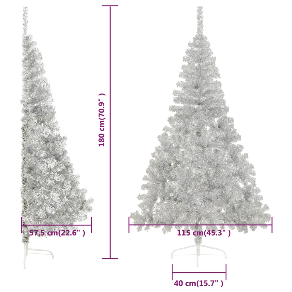 Künstlicher Halb-Weihnachtsbaum mit Ständer Silber 180 cm PET