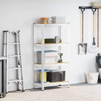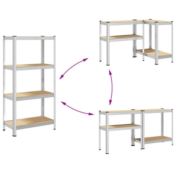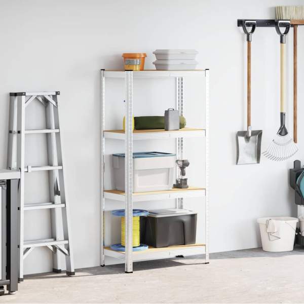 Dieses Lagerregal ist sowohl für den privaten als auch für den gewerblichen Bereich hervorragend geeignet und bietet viel Platz, um alle Gegenstände ordentlich aufzubewahren. Robustes Material: Das Lagerregal besteht aus einem Stahlrahmen und Holzwerkstoffplatten. Der Stahlrahmen garantiert Robustheit und Stabilität, während der Holzwerkstoff Stärke, Stabilität und Beständigkeit gegen Feuchtigkeit bietet.Hohe Tragfähigkeit: Dank des dicken Materials, einer Verstärkungsleiste unter jedem Regalboden und der schraubenlosen Konstruktion hat dieses Garagenregal eine hohe Tragfähigkeit.Flexible Lagerung: Dieses Lagerregal kann in zwei separate kleine Regale unterteilt werden. Außerdem sind die Einlegeböden höhenverstellbar. So bietet das Regal reichlich Stauraum für alle Gegenstände, die du organisiert aufbewahren möchtest, um stets für Ordnung und Übersichtlichkeit zu sorgen. Achtung:Um ein Umkippen zu verhindern, muss dieses Produkt mit einer Wandhalterung (nicht im Lieferumfang enthalten) gesichert werden.