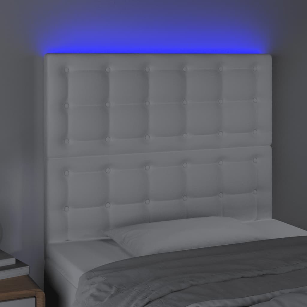LED Kopfteil Weiß 80x5x118/128 cm Kunstleder