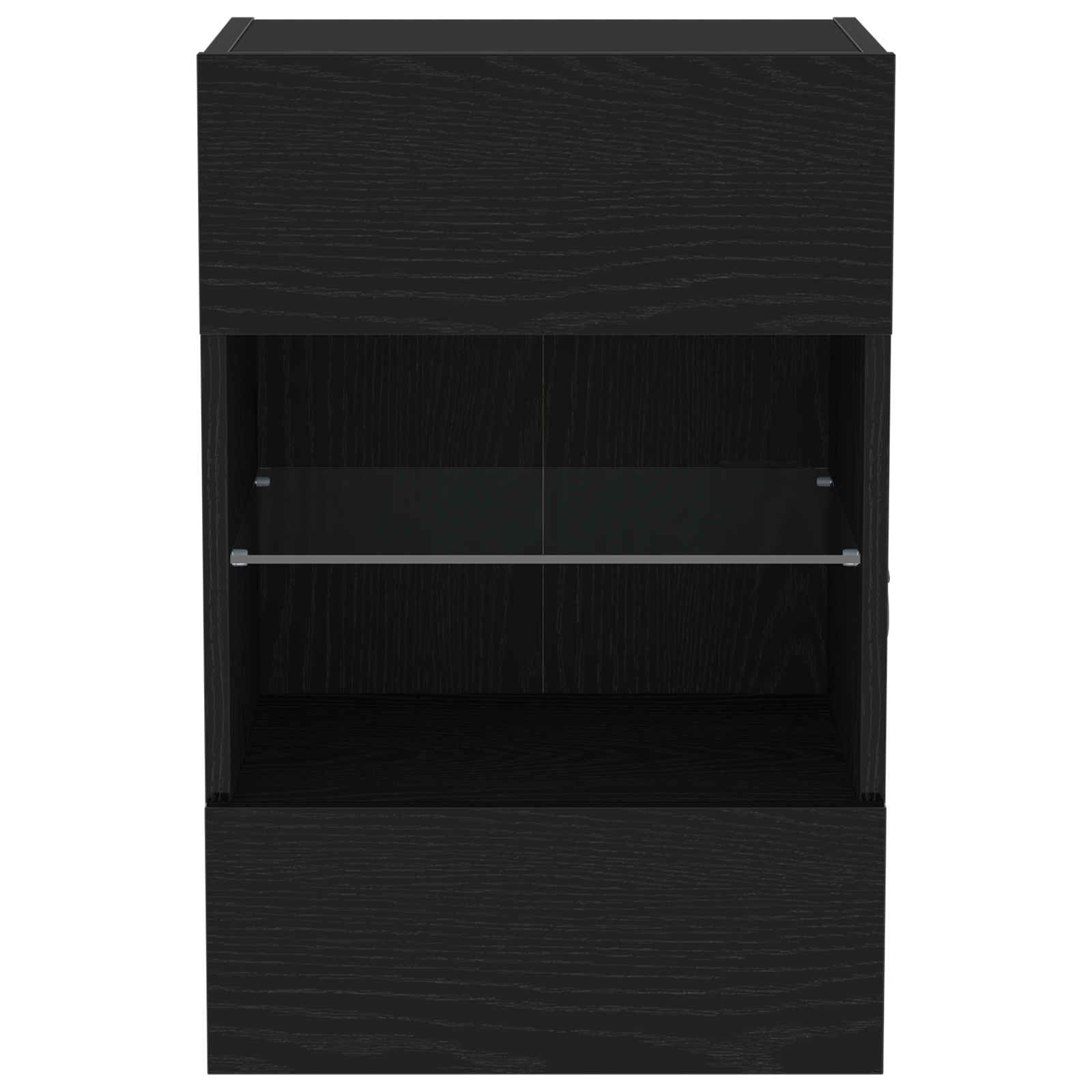 Schau dir diesen modernen schwarzen Stauraumschrank an – er verbindet Stil und Funktionalität und bringt frischen Wind in deine Wohnung. Der Schrank aus hochwertigem Holzwerkstoff mit eleganten Glasregalen hilft dir dabei, Ordnung zu halten und sieht dabei auch noch toll aus. Stylisches Design: Die schicke schwarze Oberfläche passt perfekt in moderne Einrichtungen und ist ein tolles Highlight in jedem Raum. Platz für deine Sachen: Mit zwei großen Schubladen und einem Glasregal kannst du verschiedene Dinge einfach verstauen und deinen Raum ordentlich halten. Robustes Material: Aus Holzwerkstoff mit einer pflegeleichten Oberfläche, dieser Schrank ist darauf ausgelegt, lange zu halten und einfach zu reinigen. Flexible Merkmale: Das modulare Design lässt sich nach deinen Wünschen anpassen, egal ob für Stauraum oder zur Präsentation. Vielseitig einsetzbar: Tolle Lösung für Wohnzimmer und Schlafzimmer, es ist eine praktische Option für verschiedene Einrichtungsstile.