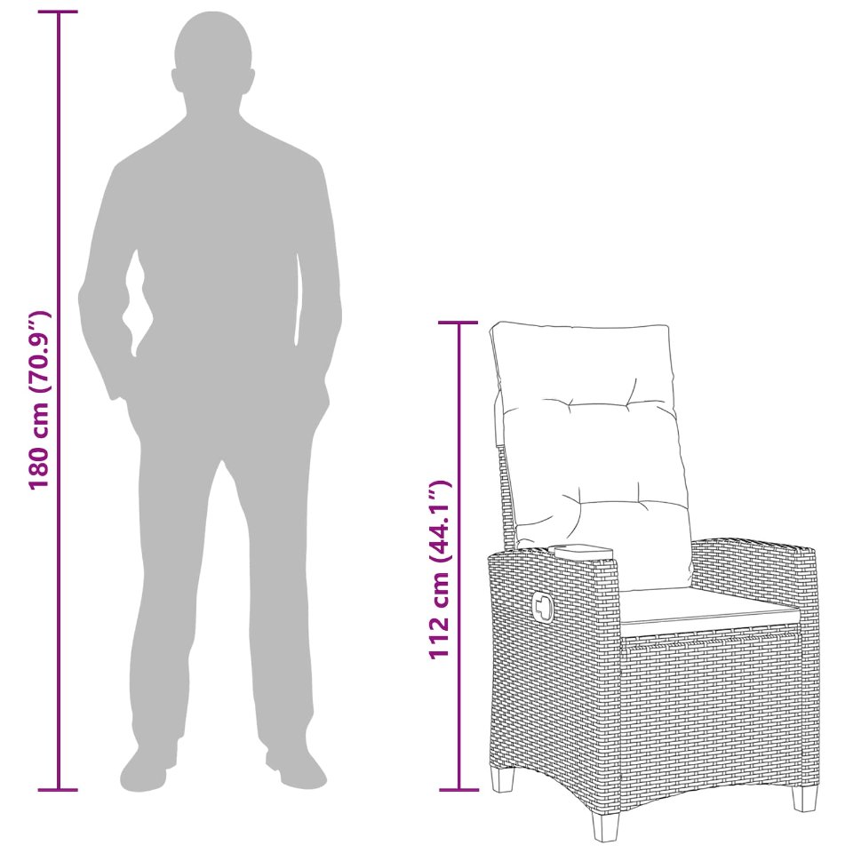 Liegestuhl mit Teeteller 62 x 64 x 112 cm Poly-Rattan