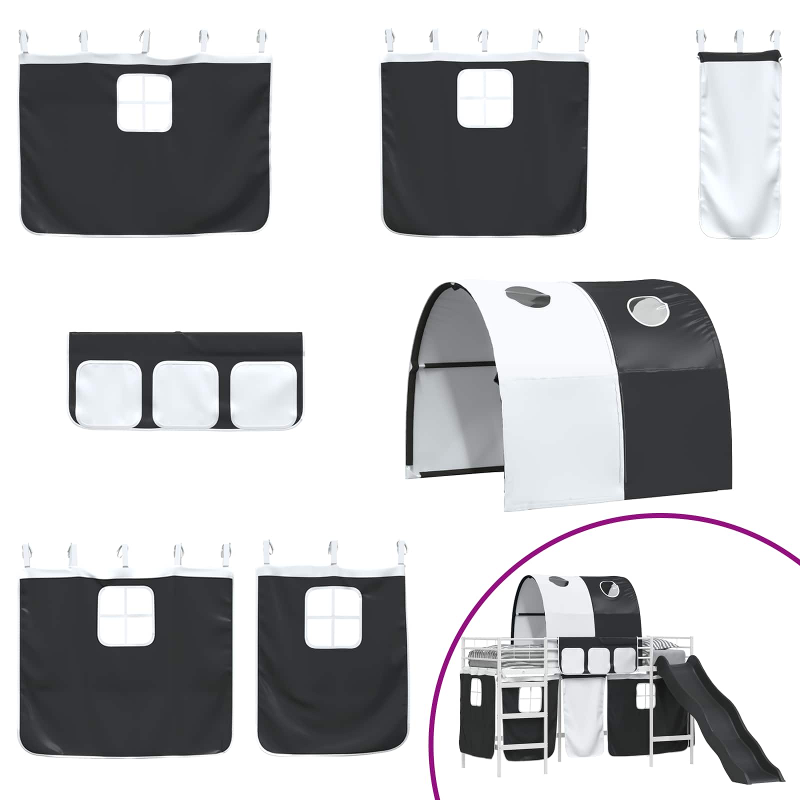 Für abenteuerlustige Kinder gemacht, bietet der Hochbett-Rahmen eine spaßige und praktische Schlaf- und Spielgelegenheit. Mit seinem stylischen Bogen-Design und den praktischen Vorhängen gibt er jedem Kinderzimmer einen fantasievollen Charme und schafft einen tollen Ort zum Entspannen, Spielen und Entdecken. Der Hochbett-Rahmen passt perfekt zu wachsenden Kindern und ist sowohl ein Blickfang als auch eine platzsparende Lösung für aktive Haushalte. Robuster Metallrahmen Aus strapazierfähigem Stahl, der für Langlebigkeit und Stabilität sorgt. Der starke Rahmen bietet zuverlässige Unterstützung und hält Bewegungen beim Spielen stand, sodass er die ideale Wahl für aktive Kinder ist. Vollendetes Kopfteil Das Kopfteil ist an der Wand montiert, spart Platz und sieht elegant aus. Sein schlichtes Design passt gut zu den Farben und verbessert den Look des Bettes. Praktische Vorhänge Das atmungsaktive Mesh-Material sorgt für besten Luftaustausch und schafft eine gemütliche Umgebung. Mit Ösen-Mischung lässt sich der Vorhang mühelos öffnen und schließen, was Kinder ganz einfach bedienen können. Feste Grundlage Der Plattform-Lattenrost bietet eine gleichmäßige Unterstützung für einen erholsamen Schlaf. Die Anordnung sorgt für Luftzirkulation, die wichtig ist, damit die Matratze länger hält. Sanfte Rutsche Die integrierte Bogenstruktur hat eine Rutsche, die das Aufstehen und Zubettgehen zum Spaß macht. Sie ist sicher gestaltet und bietet einen sanften Hang, den Kinder ohne Probleme nutzen können.
