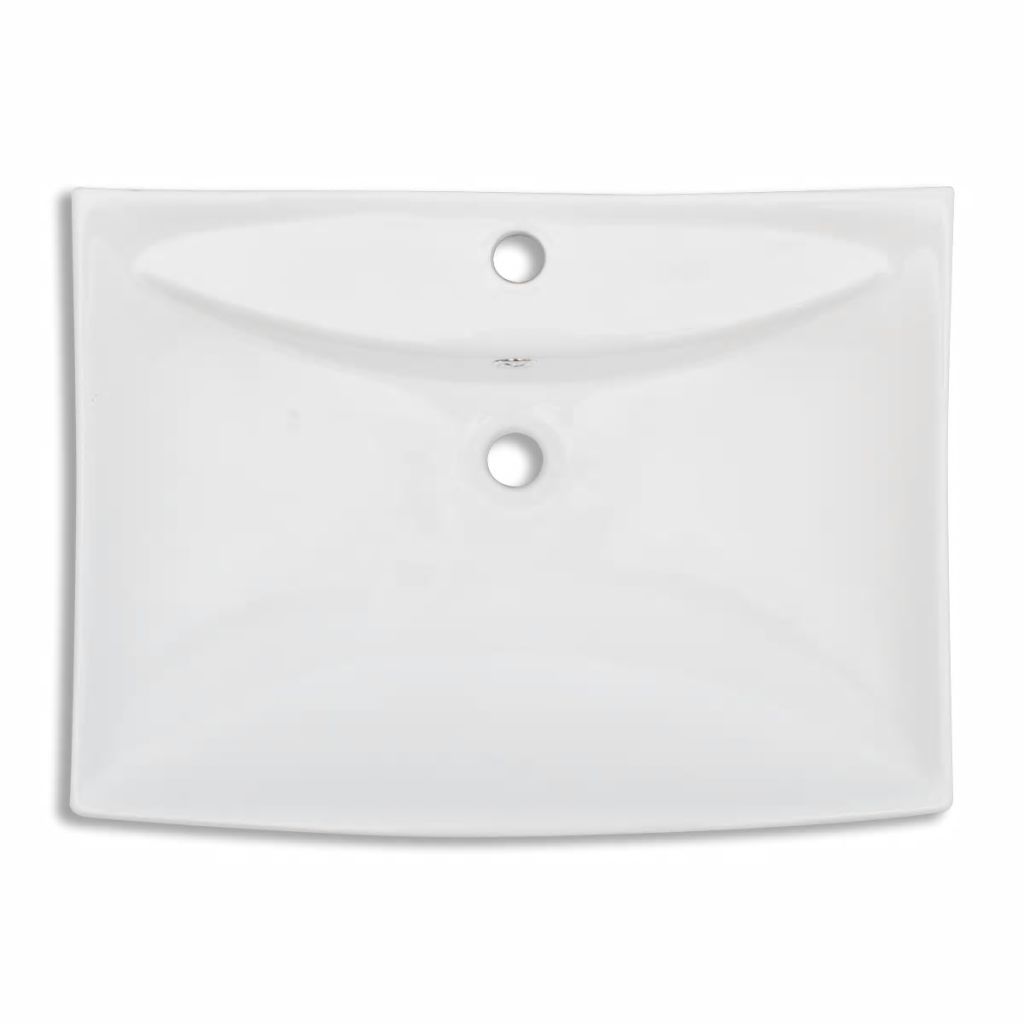 Dieses rechteckige Waschbecken aus hochwertiger Keramik ist ein stilvolles Zubehör für jedes Badezimmer. Seine hochglänzende Oberfläche überzeugt mit einem modernen, eleganten Design. Dieses kunstvolle Keramikwaschbecken ist mehr als nur ein praktischer Begleiter bei der täglichen Badezimmer-Routine! Es ist auch eine Zierde für Ihre Zuhause. Mit seiner eleganten, zeitlosen Gestaltung fügt es sich harmonisch in jeden Einrichtungsstil ein. Darüber hinaus ist es einfach zu installieren. Ein Überlauf ist vorhanden, sodass das Wasser ablaufen kann, wenn das Waschbecken zu voll ist. Das Hahnloch hat einen Durchmesser von 3,5 cm und eignet sich für die Montage eines Wasserhahns. Die Abflussöffnung hat einen Durchmesser von 4,5 cm. Bitte beachten Sie, dass die Ablaufgarnitur nicht im Lieferumfang enthalten ist. Wenn Sie dieses Waschbecken an der Wand montieren möchten, sind Schrauben erforderlich. Bitte beachten Sie, dass diese Schrauben nicht im Lieferumfang enthalten sind.