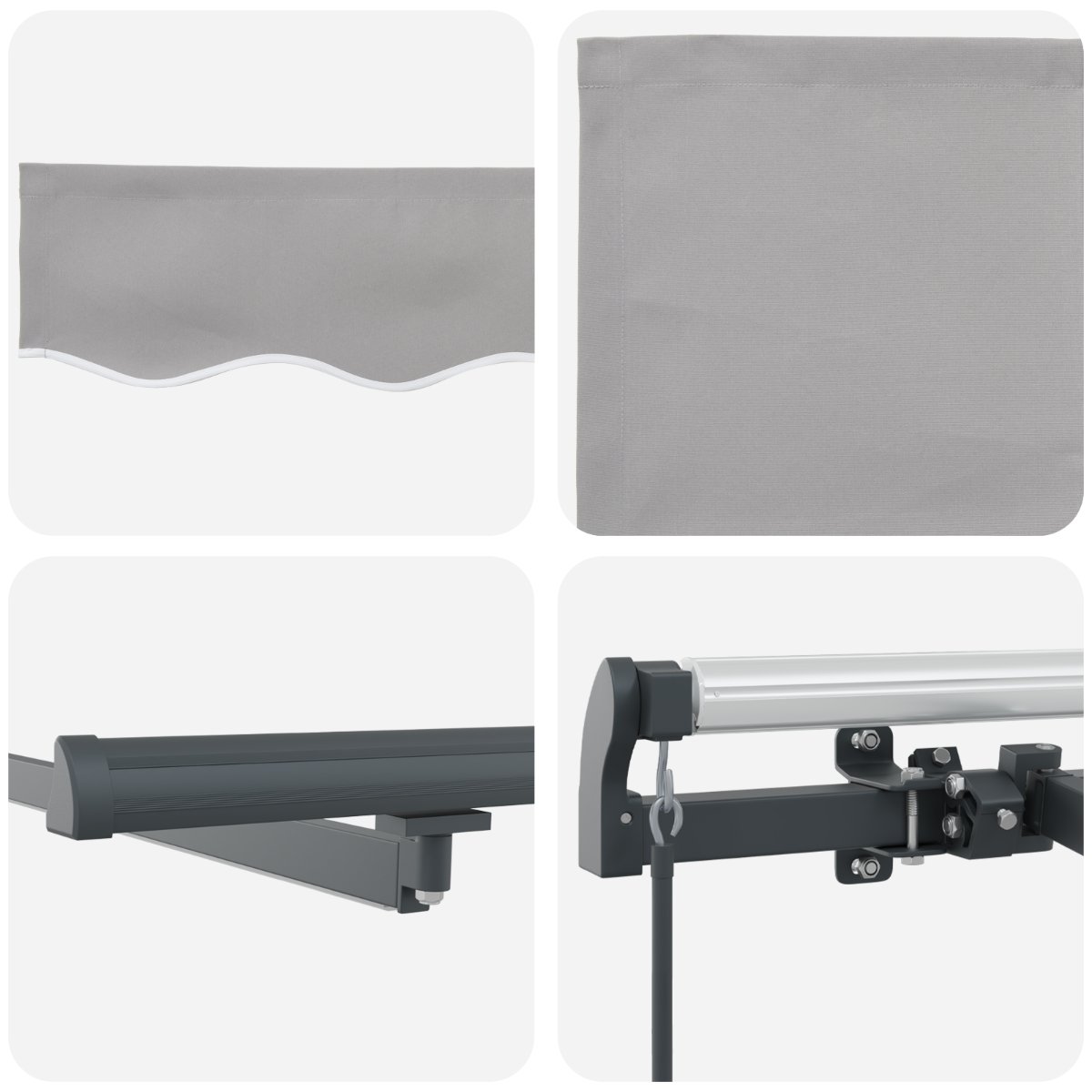 manuelle einziehbare Markise mit LED Hellgrau 300x250 cm, Markisenersatzstoff für 3x2,5 m Rahmen Hellgrau