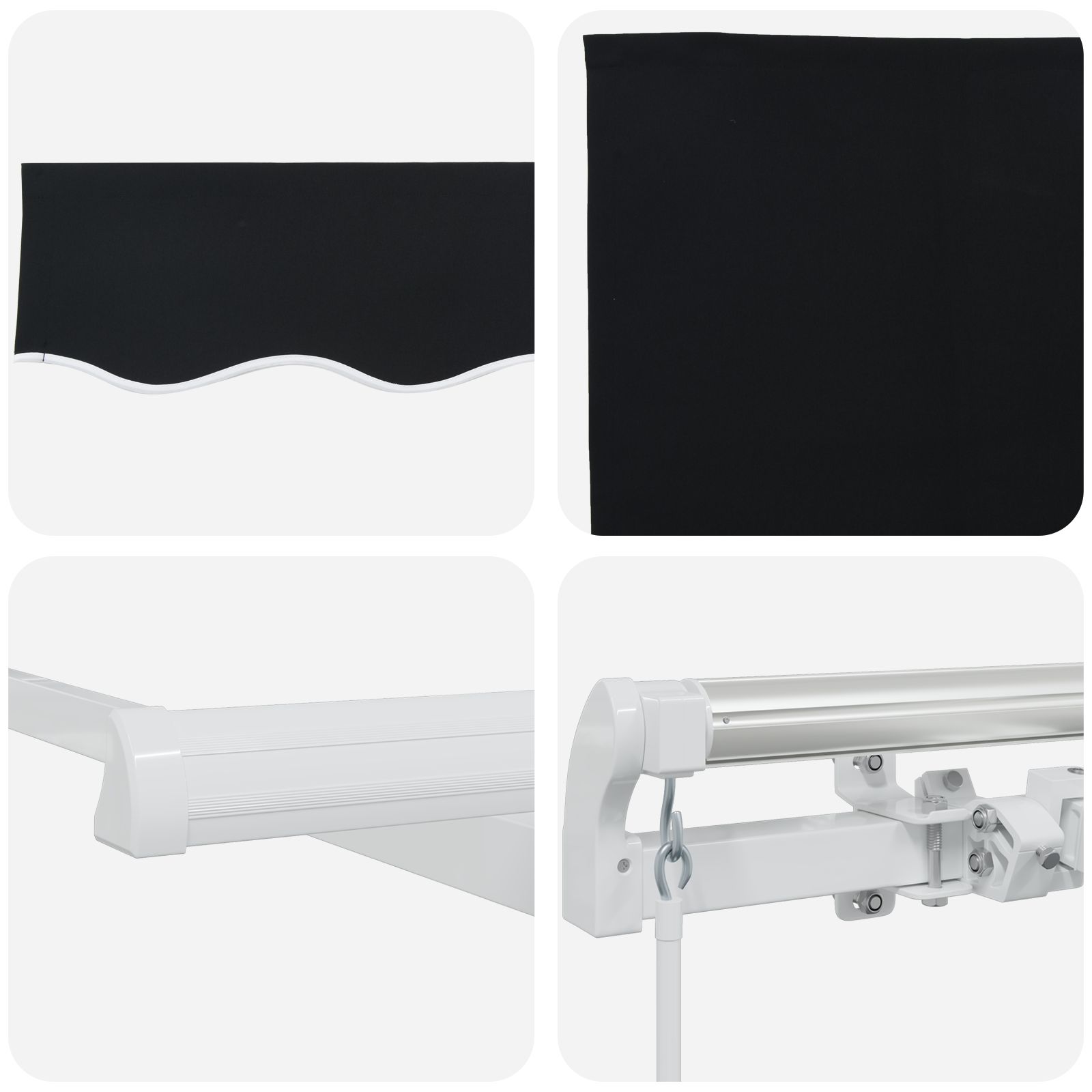 Diese einziehbare Markise ist eine praktische und coole Wahl für Außenbereiche – perfekt für Balkone oder Wintergärten. Sie bringt mehr Gemütlichkeit in deine Freizeit im Freien mit ihrem stylischen schwarzen Design und bietet ausreichend Schatten und Wetterschutz. Haltbare Konstruktion: Hergestellt aus strapazierfähigem Material und Aluminium, sodass sie lange hält und Wetterbedingungen standhält. Wasserbeständig: Der Acrylstoff hält Regen ab und bleibt nützlich, selbst bei leichtem Nieselregen. UV-Schutz: Schützt deinen Außenbereich vor schädlichen Sonnenstrahlen, sodass du sonnige Tage sicher genießen kannst. Verstellbarer Winkel: Mit manueller Funktion, um den Neigungswinkel auf 10 Grad einzustellen – perfekt, um die Sonne abzuhalten. Einfache Installation: Schnell und einfach montiert, mit nur grundlegenden Werkzeugen und zwei Personen, was das Setup supereasy macht.
