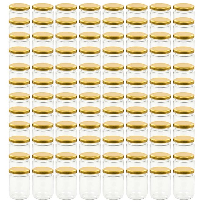 Die Marmeladengläser haben ein Fassungsvermögen von bis zu 230 ml. Sie stellen eine ideale Lösung für die Aufbewahrung von Chutney, Marmeladen, Essiggurken, Saucen, Konfitüren usw. dar. Diese Marmeladengläser aus transparentem Glas haben ein einfaches und klares Aussehen und ermöglichen eine einfache Überwachung und Identifizierung. Der weite Mund sorgt dafür, dass Sie Marmeladen einfach und schnell hineinlegen bzw. herausnehmen können. Darüber hinaus sind die Glasbehälter mit einem goldenen Deckel gut verschlossen, sodass Ihre Konfitüren länger frisch bleiben. Die Lieferung umfasst 96 Einmachgläser.