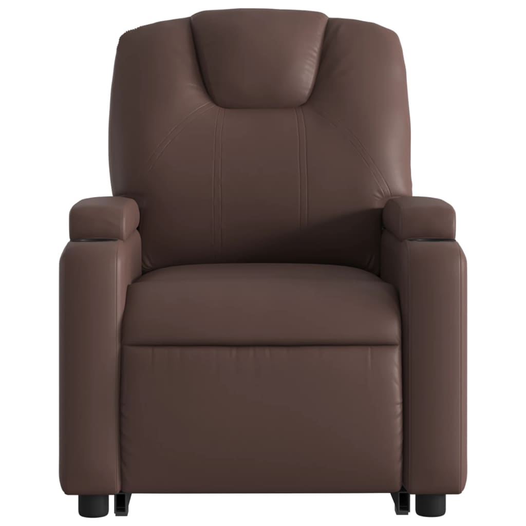 Lehne dich zurück und entspanne dich in diesem äußerst bequemen Massagesessel mit Aufstehhilfe! Elektrische Aufstehhilfe: Dieser Relaxsessel ist mit einem Elektromotor zum Anheben ausgestattet. Dank der Aufstehhilfe, die den gesamten Sessel nach oben bringt, kannst du ganz einfach auf Knopfdruck aufstehen, ohne deinen Rücken und deine Knie zu belasten.Manuelle Liegefunktion: Dieser Ruhesessel lässt sich mittels des Griffs an der rechten Seite verstellen. So kannst du das Fußteil und die Rückenlehne manuell in jede beliebige Position bringen, um höchsten Komfort zu genießen. Die Rückenlehne lässt sich max. 135 Grad nach hinten verstellen. Durch einfaches Ziehen lässt sie sich schnell wieder in die ursprüngliche Position bringen.Vibrationsfunktion: Dank der 6 Massagepunkte genießt du eine gezielte Massage. Zudem lassen sich verschiedene Massageprogramme über die mitgelieferte Handsteuerung auswählen. Die Massagefunktion wird über den USB-Anschluss betrieben, der eine zertifizierte 5-V-USB-Stromquelle erfordert (nicht im Lieferumfang enthalten).Bequemes Sitzerlebnis: Die dick gepolsterte Sitzfläche, die Rückenlehne und die breiten, mit Kunstleder bezogenen Armlehnen sorgen für ein behagliches und angenehmes Sitzgefühl. Kunstleder ist ein äußerst langlebiges Material. Es ist schmutzabweisend und lässt sich mit einem feuchten Tuch einfach reinigen. Durch die glatte Oberfläche weist es die luxuriöse Schönheit von Echtleder auf.Praktische Getränkehalter und Seitentasche: Dieser Sessel verfügt über zwei praktische Getränkehalter und eine Seitentasche, in der du deine Fernbedienung oder andere wichtige Sachen griffbereit aufbewahren kannst.Solider und stabiler Rahmen: Der Rahmen aus Holz und Metall sorgt für eine solide Struktur und hohe Stabilität. Dieser TV-Sessel ist bequem und langlebig.