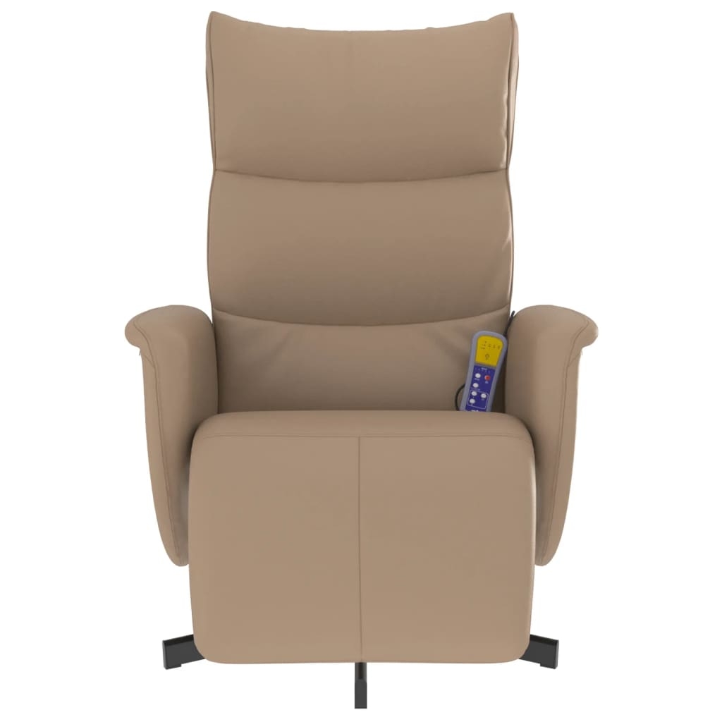 Lehne dich zurück und entspanne dich in diesem äußerst bequemen Massagesessel! Vibrationsfunktion: Dank der 6 Massagepunkte genießt du eine gezielte Massage. Zudem lassen sich verschiedene Massageprogramme über die mitgelieferte Handsteuerung auswählen. Die Massagefunktion wird über den USB-Anschluss betrieben, der eine zertifizierte 5-V-USB-Stromquelle erfordert (nicht im Lieferumfang enthalten).Verstellbare Rückenlehne und Fußstütze: Dieser Massagesessel ist mit Liegefunktion ausgestattet, sodass du Rückenlehne und Fußstütze nach Belieben einstellen kannst. Die Rückenlehne kann von 105 bis 125 Grad geneigt werden.Um 360 Grad drehbar: Der Massagesessel lässt sich um 360 Grad schwenken, was ihm Flexibilität verleiht.Bequemes Sitzerlebnis: Der dick gepolsterte Sitz, die Rückenlehne und die breiten, mit Kunstleder bezogenen Armlehnen sorgen für ein behagliches und angenehmes Sitzgefühl. Künstliches Leder ist ein äußerst langlebiges Material. Es ist schmutzabweisend und lässt sich mit einem feuchten Tuch einfach reinigen. Durch die glatte Oberfläche weist es die luxuriöse Schönheit von Echtleder auf.Solider und stabiler Rahmen: Der Rahmen aus Sperrholz und Metall sorgt für Robustheit und hohe Stabilität. Dieser Massagesessel ist bequem und langlebig. Gut zu wissen:Um Platz zu sparen, werden einige Teile oder Kissen in die Möbel gepackt – überprüfen Sie die Reißverschlussfächer oder unter dem Sitzbezug auf versteckte Komponenten.