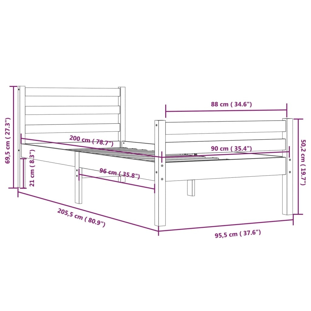 Mit diesem Holzbett verleihen Sie Ihrem Schlafzimmer eine moderne Note! Es ist eine praktische und dekorative Bereicherung für jedes Schlafzimmer. Erstklassiges Massivholz: Massives Kiefernholz ist ein wunderschönes Naturmaterial. Kiefernholz weist eine gerade Maserung auf und die Aststellen verleihen dem Material seine charakteristische, rustikale Optik.Stabil: Der Holzrahmen sorgt für Robustheit und Stabilität. Robuste Latten: Die Sperrholzlatten sorgen für eine gute Gewichtsverteilung und auch dafür, dass die Matratze bei jeder Bewegung Ihres Körpers während des Schlafes an Ort und Stelle bleibt.Komfortables Kopfteil: Am klassischen Kopfteil können Sie sich beim Lesen oder Fernsehen bequem zurücklehnen und entspannen.Passende Lösung: Dieses Einzelbett ist eine großartige Lösung für kleine Räume, multifunktionale Zimmer, Einzelschläfer und ältere Kinder. Wie auch immer Sie Ihr Zimmer dekorieren möchten, dieses Einzelbett wird all Ihren Anforderungen gerecht! Hinweis:Die Lieferung umfasst nur einen Bettrahmen. Die Matratze ist nicht im Lieferumfang enthalten. Die passenden Matratzen finden Sie in unserem Shop.Dieser Bettrahmen ist für eine Matratze mit einer Größe von 90 x 200 cm geeignet.