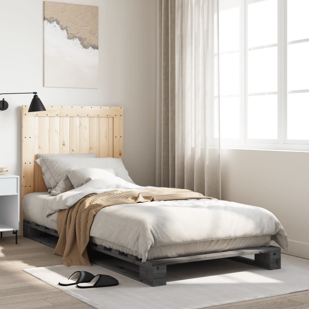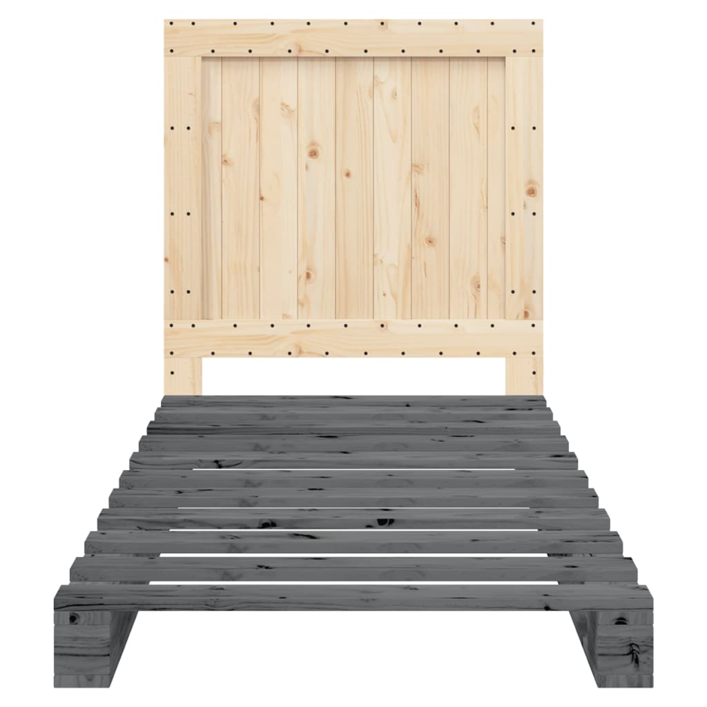 Massivholzbett mit Kopfteil Grau 90x200 cm Kiefer