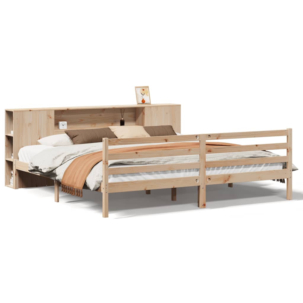 In diesem Bett mit Bücherregal schläft man besser und erholsamer! Das Massivholzbett ist eine willkommene Ergänzung für jedes Schlafzimmer. Stabiles und langlebiges Gestell: Massives Kiefernholz ist für seine Stärke und Haltbarkeit bekannt. Seine gerade Maserung und die charakteristischen Aststellen tragen zu seinem rustikalen Charme bei.Lattenrost für optimale Unterstützung: Der Bettrahmen ist mit einem Lattenrost ausgestattet, der deine Matratze stützt und atmungsaktiv hält.Viel Stauraum: Dieses Regal-Kopfteil bietet reichlich Stauraum, um Bücher, Dekoartikel und andere Gegenstände griffbereit aufzubewahren und auf diese Weise für Ordnung im Schlafzimmer zu sorgen.Praktisches Fußteil: Das Fußteil trägt nicht nur zur Gesamtstabilität des Bettrahmens bei und sorgt auch für eine sichere Schlafumgebung. Es hält die Matratze und das Bettzeug am Platz, wodurch ein ordentliches Erscheinungsbild erhalten bleibt.Platzsparend: Dieses Kopfteil bietet eine platzsparende Alternative zu üblichen Nachttischen. Es schafft zusätzlichen Stauraum im Schlafzimmer und ist eine ideale Wahl für kleine oder begrenzte Räume. Gut zu wissen:Bei diesem Bett ist keine Matratze im Lieferumfang enthalten. Wir bieten jedoch eine große Auswahl an Matratzen an. Du kannst in unserem Shop nach einer passenden Matratze suchen.
