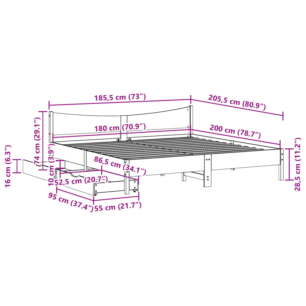 Mit diesem Bett wirst du einen besseren, erholsameren Schlaf genießen! Er ist eine einladende Ergänzung für jedes Schlafzimmer. Stabiles und langlebiges Gestell: Massives Kiefernholz ist für seine Stärke und Haltbarkeit bekannt. Seine gerade Maserung und die charakteristischen Aststellen tragen zu seinem rustikalen Charme bei.Lattenrost für optimale Unterstützung: Der Bettrahmen ist mit einem Lattenrost ausgestattet, der deine Matratze stützt und atmungsaktiv hält.Optimale Ausnutzung des Raumes: Dieser Bettrahmen verfügt über zwei Schubladen, in denen du Sachen wie zusätzliches Bettzeug, saisonale Kleidung und Spielzeug aufbewahren kannst.Leichtgängig: Dank der vier Rollen lässt sich die Unterbettschublade mühelos hineinschieben und herausziehen. Gut zu wissen:Bei diesem Bett ist keine Matratze im Lieferumfang enthalten. Wir bieten jedoch eine große Auswahl an Matratzen an. Du kannst in unserem Shop nach einer passenden Matratze suchen.