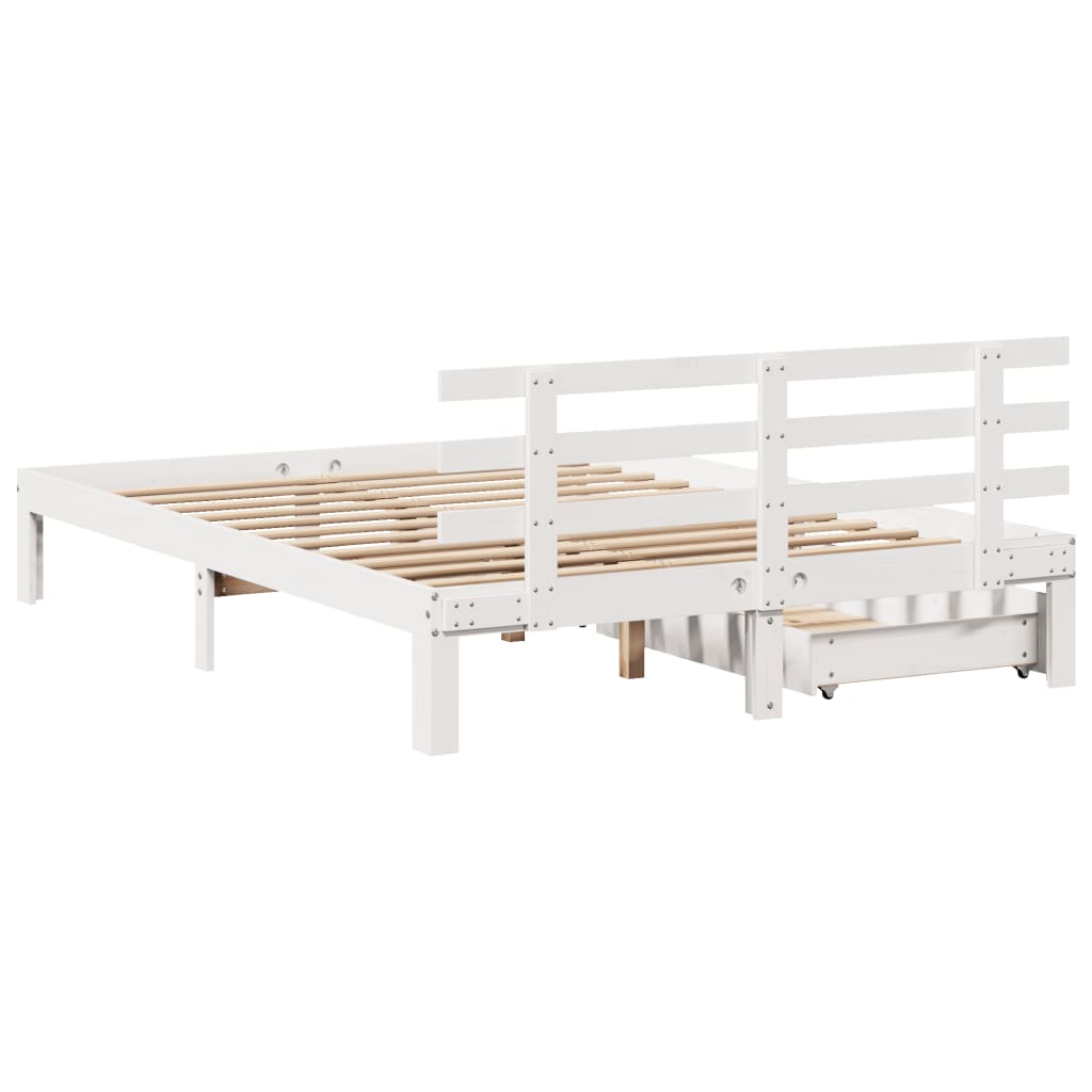 Mit diesem Bett wirst du einen besseren, erholsameren Schlaf genießen! Er ist eine einladende Ergänzung für jedes Schlafzimmer. Stabiles und langlebiges Gestell: Massives Kiefernholz ist für seine Stärke und Haltbarkeit bekannt. Seine gerade Maserung und die charakteristischen Aststellen tragen zu seinem rustikalen Charme bei.Lattenrost für optimale Unterstützung: Der Bettrahmen ist mit einem Lattenrost ausgestattet, der deine Matratze stützt und atmungsaktiv hält.Zusätzlicher Stauraum: Dieses Bettgestell verfügt über zwei Schubladen, die Stauraum für Sachen wie zusätzliches Bettzeug, saisonale Kleidung und Spielzeug schaffen.Vielseitiges Kopfteil: Dieses Bettgestell ist mit einem Kopfteil versehen, das als komfortable Rückenlehne beim Lesen oder Fernsehen und gleichzeitig als dekoratives Element dient.Leichtgängig: Dank der vier Rollen lässt sich die Unterbettschublade mühelos hineinschieben und herausziehen. Gut zu wissen:Bei diesem Bett ist keine Matratze im Lieferumfang enthalten. Wir bieten jedoch eine große Auswahl an Matratzen an. Du kannst in unserem Shop nach einer passenden Matratze suchen.