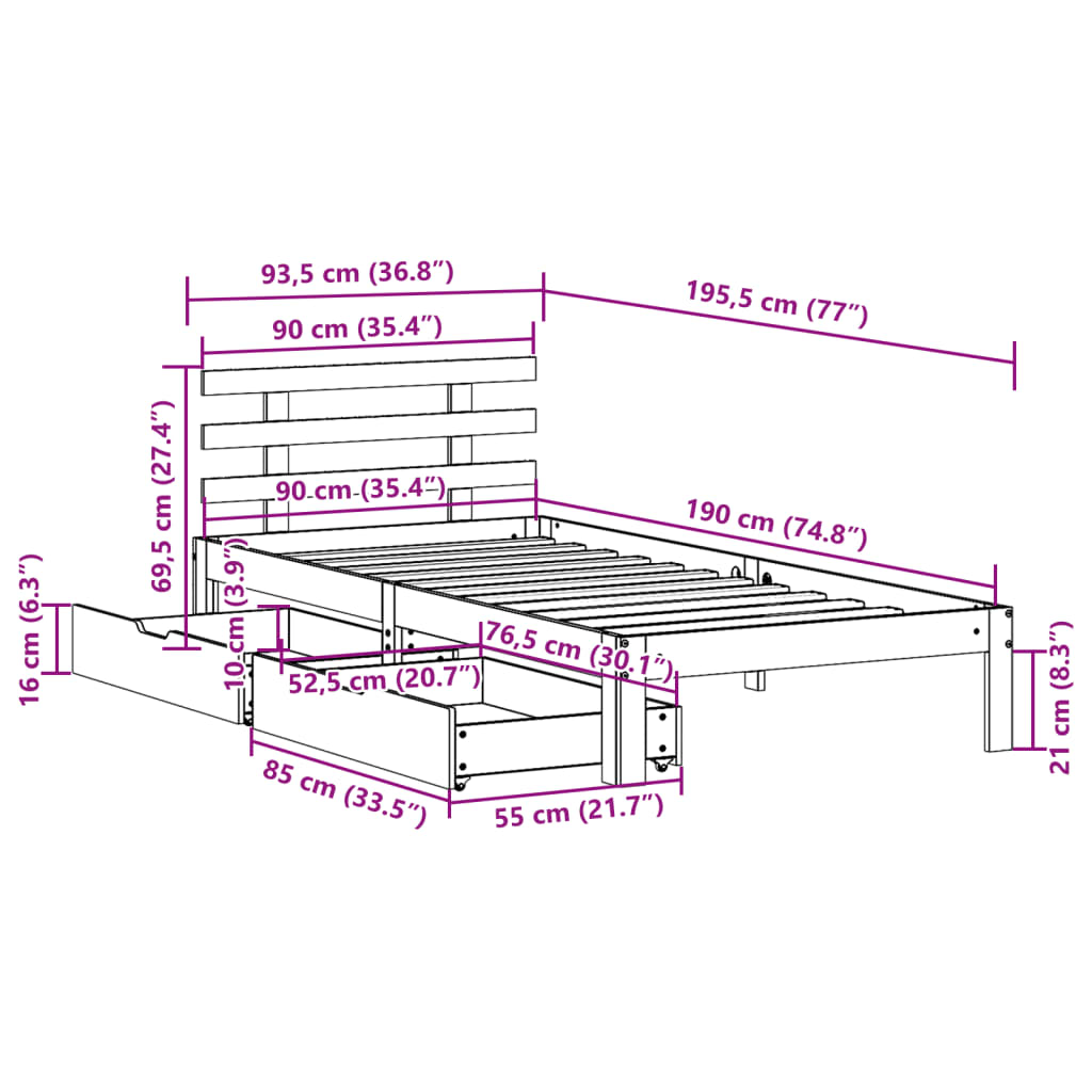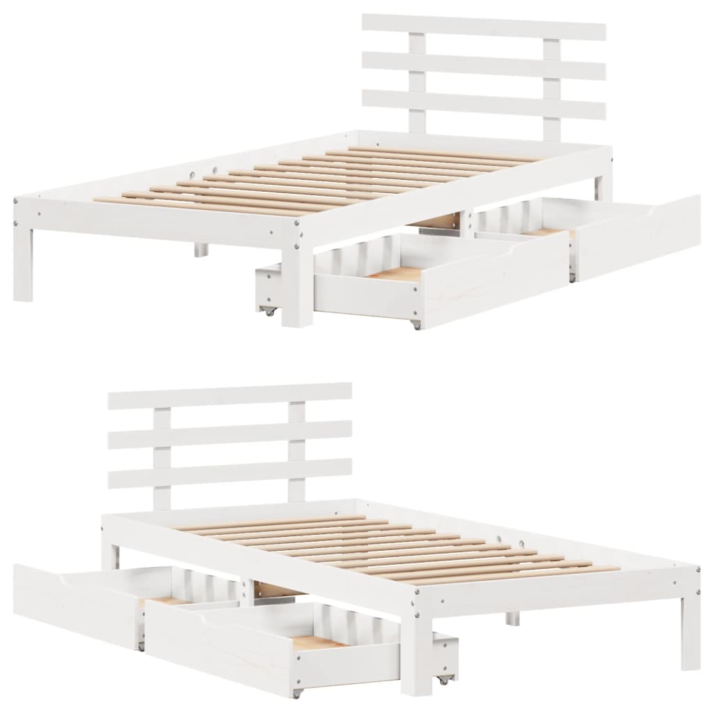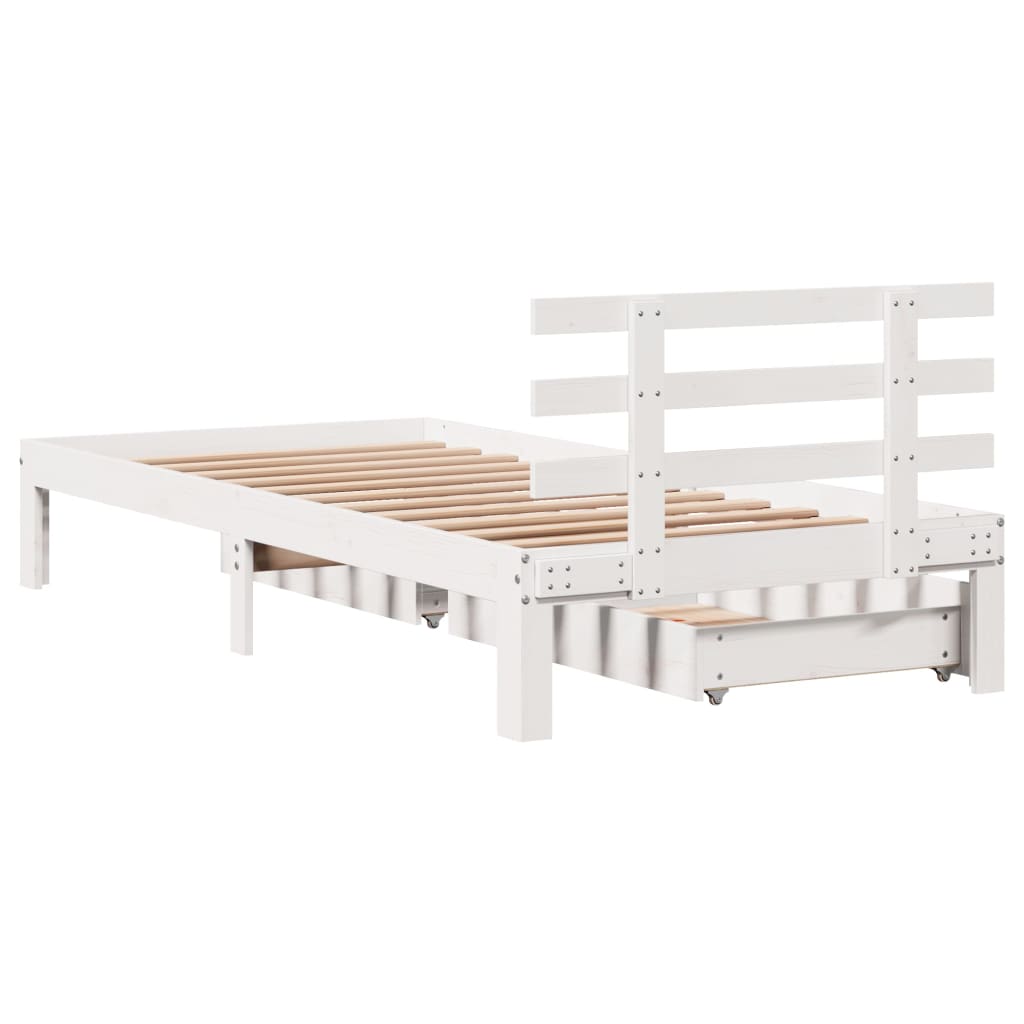 Mit diesem Bett wirst du einen besseren, erholsameren Schlaf genießen! Er ist eine einladende Ergänzung für jedes Schlafzimmer. Stabiles und langlebiges Gestell: Massives Kiefernholz ist für seine Stärke und Haltbarkeit bekannt. Seine gerade Maserung und die charakteristischen Aststellen tragen zu seinem rustikalen Charme bei.Lattenrost für optimale Unterstützung: Der Bettrahmen ist mit einem Lattenrost ausgestattet, der deine Matratze stützt und atmungsaktiv hält.Zusätzlicher Stauraum: Dieses Bettgestell verfügt über zwei Schubladen, die Stauraum für Sachen wie zusätzliches Bettzeug, saisonale Kleidung und Spielzeug schaffen.Vielseitiges Kopfteil: Dieses Bettgestell ist mit einem Kopfteil versehen, das als komfortable Rückenlehne beim Lesen oder Fernsehen und gleichzeitig als dekoratives Element dient.Leichtgängig: Dank der vier Rollen lässt sich die Unterbettschublade mühelos hineinschieben und herausziehen. Gut zu wissen:Bei diesem Bett ist keine Matratze im Lieferumfang enthalten. Wir bieten jedoch eine große Auswahl an Matratzen an. Du kannst in unserem Shop nach einer passenden Matratze suchen.