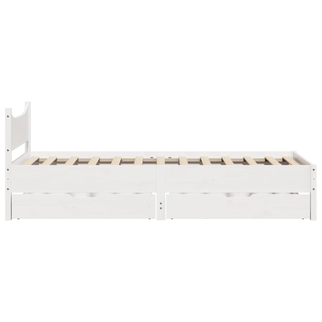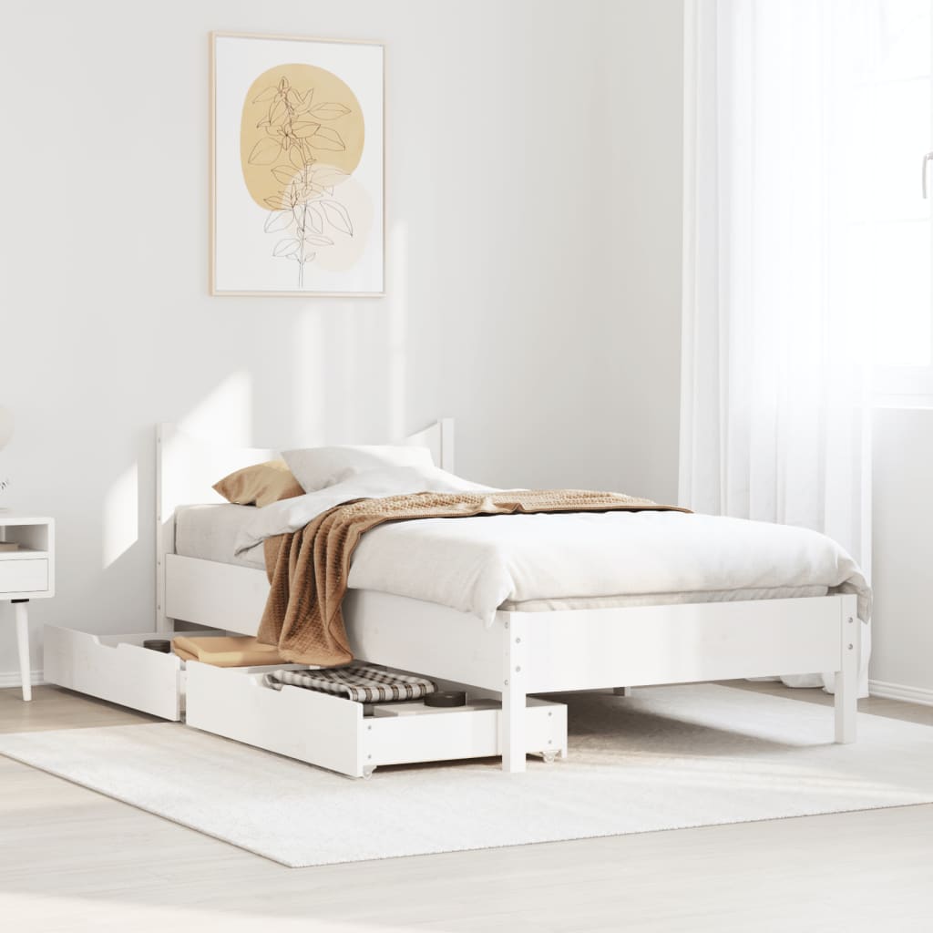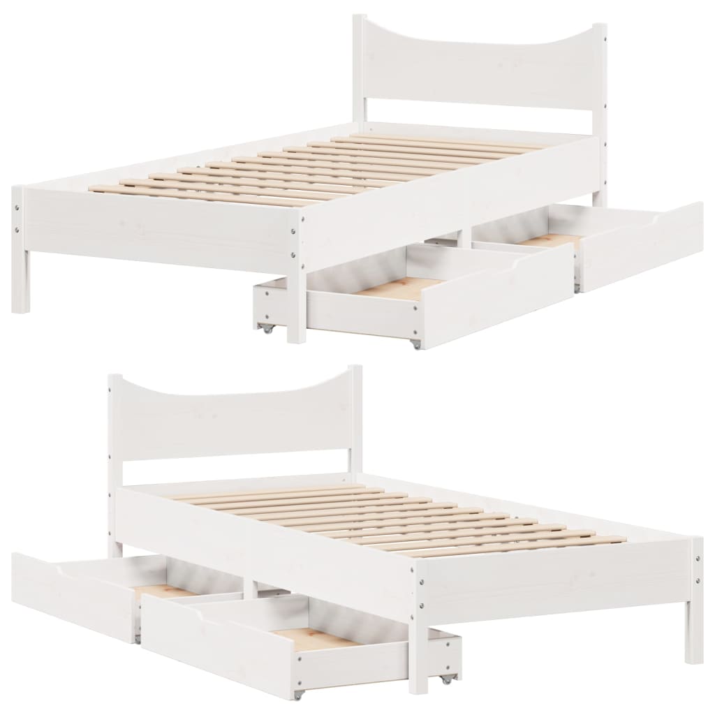 Mit diesem Bett wirst du einen besseren, erholsameren Schlaf genießen! Er ist eine einladende Ergänzung für jedes Schlafzimmer. Stabiles und langlebiges Gestell: Massives Kiefernholz ist für seine Stärke und Haltbarkeit bekannt. Seine gerade Maserung und die charakteristischen Aststellen tragen zu seinem rustikalen Charme bei.Lattenrost für optimale Unterstützung: Der Bettrahmen ist mit einem Lattenrost ausgestattet, der deine Matratze stützt und atmungsaktiv hält.Optimale Ausnutzung des Raumes: Dieser Bettrahmen verfügt über zwei Schubladen, in denen du Sachen wie zusätzliches Bettzeug, saisonale Kleidung und Spielzeug aufbewahren kannst.Leichtgängig: Dank der vier Rollen lässt sich die Unterbettschublade mühelos hineinschieben und herausziehen. Gut zu wissen:Bei diesem Bett ist keine Matratze im Lieferumfang enthalten. Wir bieten jedoch eine große Auswahl an Matratzen an. Du kannst in unserem Shop nach einer passenden Matratze suchen.