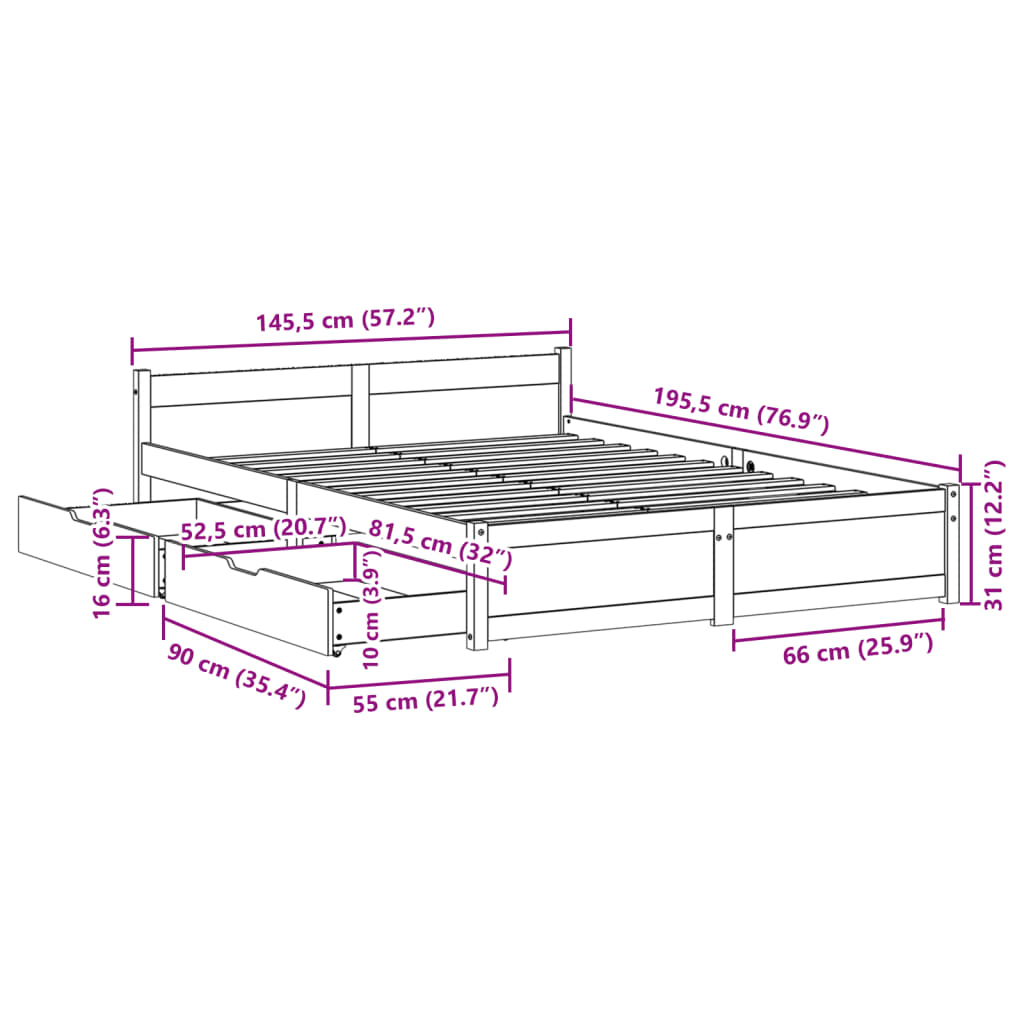 - Abmessungen Bett: 195,5 x 145,5 x 51 cm (L x B x H)