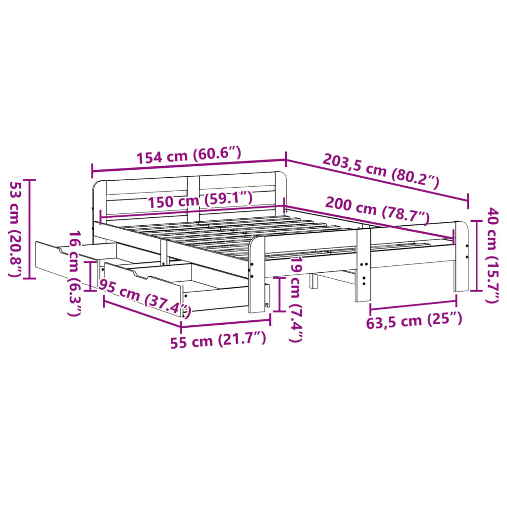 - Passende Matratzengröße: 150 x 200 cm (B x L) (Matratze nicht enthalten)