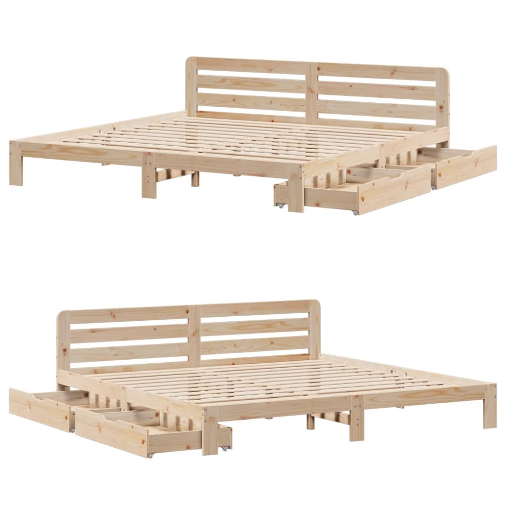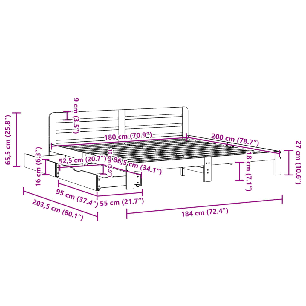 Mit diesem Bett wirst du einen besseren, erholsameren Schlaf genießen! Er ist eine einladende Ergänzung für jedes Schlafzimmer. Stabiles und langlebiges Gestell: Massives Kiefernholz ist für seine Stärke und Haltbarkeit bekannt. Seine gerade Maserung und die charakteristischen Aststellen tragen zu seinem rustikalen Charme bei.Lattenrost für optimale Unterstützung: Das Bett ist mit einem Lattenrost ausgestattet, der deine Matratze optimal stützt und eine gute Luftzirkulation ermöglicht.Leichtgängig: Dank der vier Rollen lässt sich die Unterbettschublade mühelos hineinschieben und herausziehen.Stabile und starke Bettfüße: Dieses Bettgestell wird von starken Füßen getragen, die für Stabilität sorgen.Vielseitiges Kopfteil: Dieses Bett ist mit einem Kopfteil ausgestattet, das eine komfortable Lehne beim Lesen oder Fernsehen ist und gleichzeitig als dekoratives Element dient. Gut zu wissen:Bei diesem Bett ist keine Matratze im Lieferumfang enthalten. Wir bieten jedoch eine große Auswahl an Matratzen an. Du kannst in unserem Shop nach einer passenden Matratze suchen.