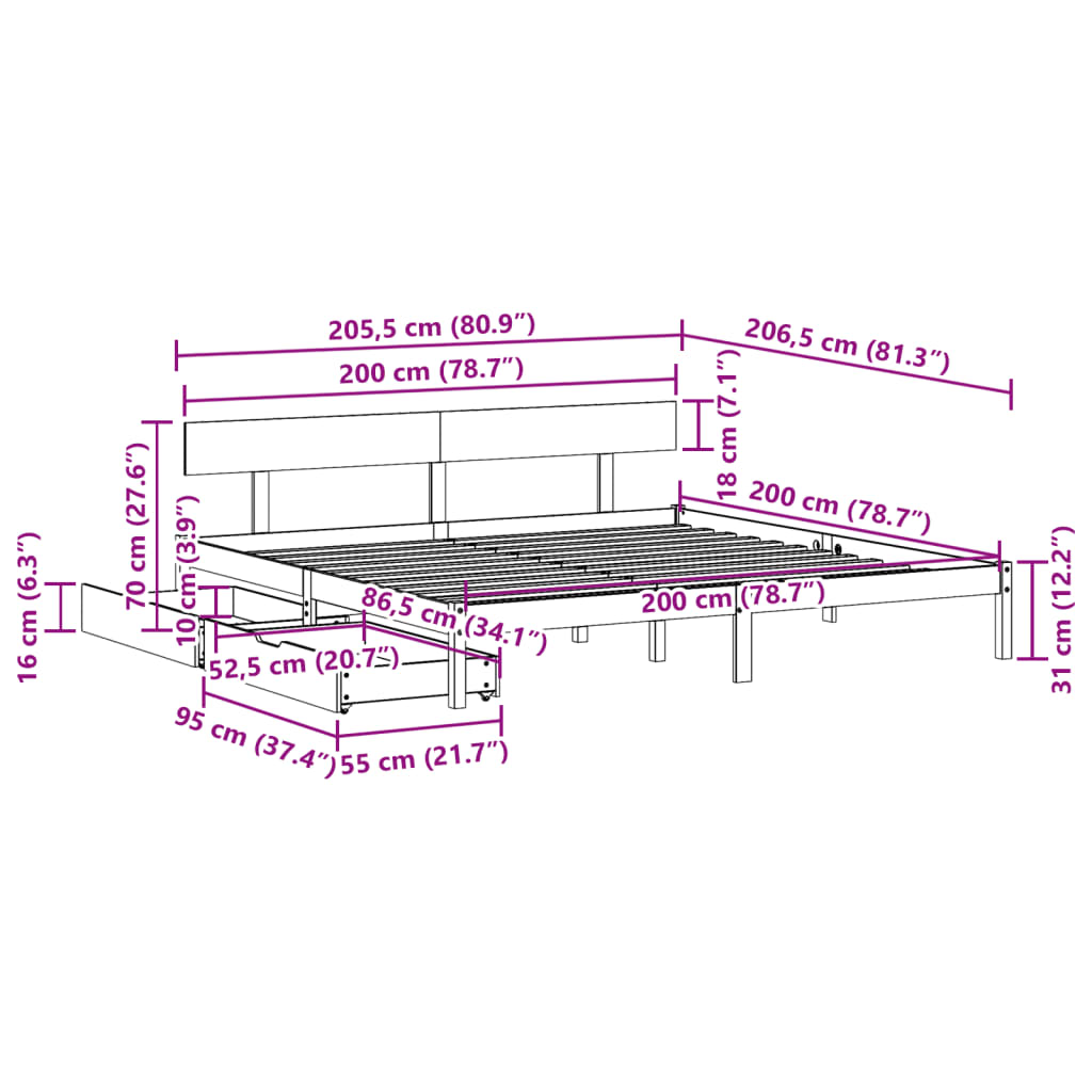 Mit diesem Bett wirst du einen besseren, erholsameren Schlaf genießen! Er ist eine einladende Ergänzung für jedes Schlafzimmer. Stabiles und langlebiges Gestell: Massives Kiefernholz ist für seine Stärke und Haltbarkeit bekannt. Seine gerade Maserung und die charakteristischen Aststellen tragen zu seinem rustikalen Charme bei.Lattenrost für optimale Unterstützung: Der Bettrahmen ist mit einem Lattenrost ausgestattet, der deine Matratze stützt und atmungsaktiv hält.Optimale Ausnutzung des Raumes: Dieser Bettrahmen verfügt über zwei Schubladen, in denen du Sachen wie zusätzliches Bettzeug, saisonale Kleidung und Spielzeug aufbewahren kannst.Leichtgängig: Dank der vier Rollen lässt sich die Unterbettschublade mühelos hineinschieben und herausziehen. Gut zu wissen:Bei diesem Bett ist keine Matratze im Lieferumfang enthalten. Wir bieten jedoch eine große Auswahl an Matratzen an. Du kannst in unserem Shop nach einer passenden Matratze suchen.