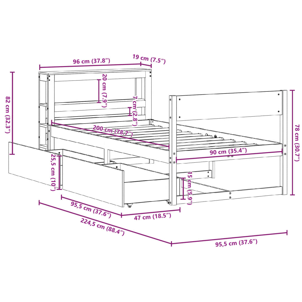 Mit diesem Bett wirst du einen besseren, erholsameren Schlaf genießen! Er ist eine einladende Ergänzung für jedes Schlafzimmer. Stabiles und langlebiges Gestell: Massives Kiefernholz ist für seine Stärke und Haltbarkeit bekannt. Seine gerade Maserung und die charakteristischen Aststellen tragen zu seinem rustikalen Charme bei.Lattenrost für optimale Unterstützung: Der Bettrahmen ist mit einem Lattenrost ausgestattet, der deine Matratze stützt und atmungsaktiv hält.Optimale Ausnutzung des Raumes: Dieser Bettrahmen verfügt über zwei Schubladen, in denen du Sachen wie zusätzliches Bettzeug, saisonale Kleidung und Spielzeug aufbewahren kannst.Reichlich Stauraum: Das elegante Kopfteil des Bettes verfügt über zwei praktische Ablagen, die reichlich Stauraum bieten, um wichtige Sachen nachts griffbereit zu halten.Freistehend: Das freistehende Kopfteil lässt sich mühelos anbringen und bei Bedarf umstellen, ohne eine Befestigung an der Wand zu erfordern. Gut zu wissen:Bei diesem Bett ist keine Matratze im Lieferumfang enthalten. Wir bieten jedoch eine große Auswahl an Matratzen an. Du kannst in unserem Shop nach einer passenden Matratze suchen.