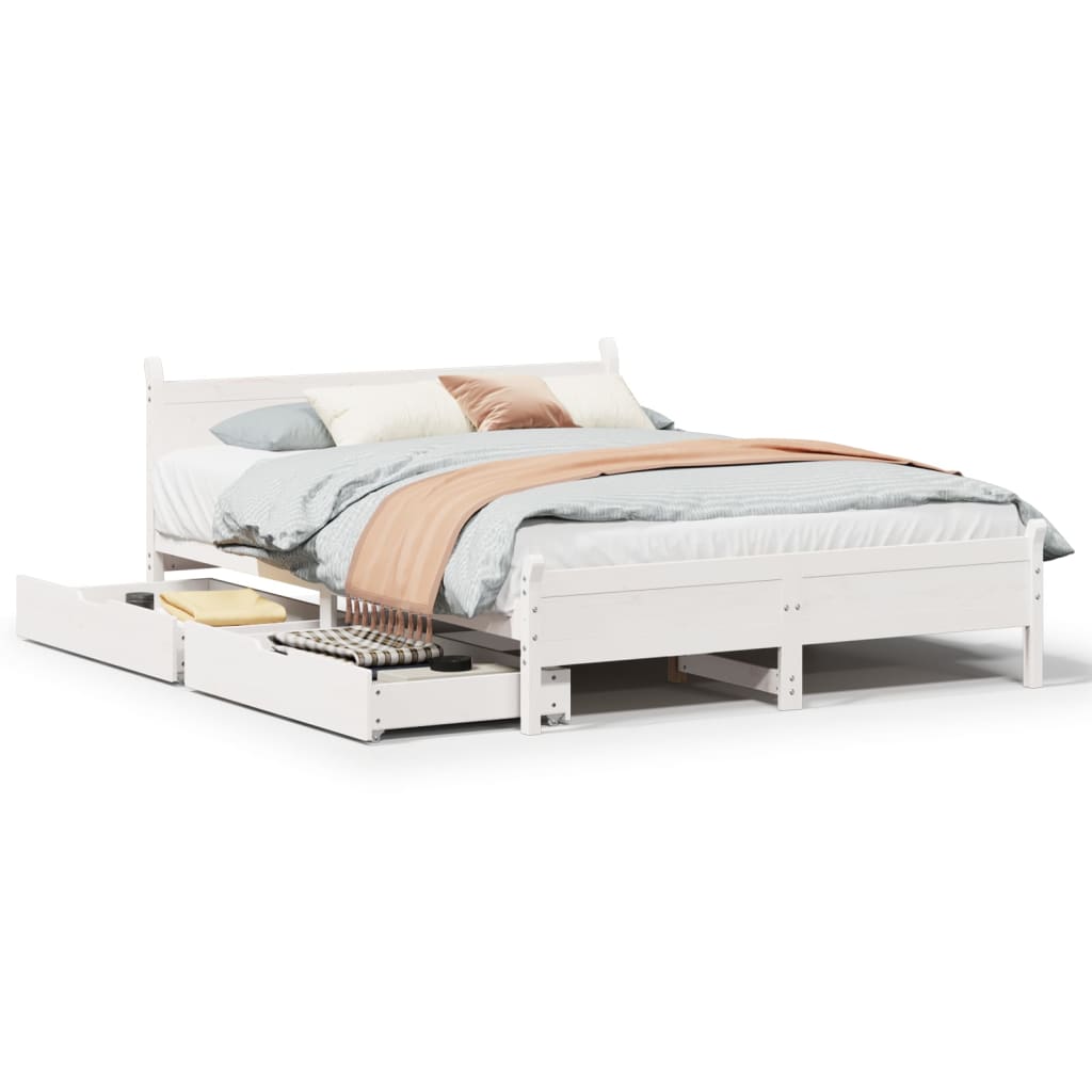 Mit diesem Bett wirst du einen besseren, erholsameren Schlaf genießen! Er ist eine einladende Ergänzung für jedes Schlafzimmer. Stabiles und langlebiges Gestell: Massives Kiefernholz ist für seine Stärke und Haltbarkeit bekannt. Seine gerade Maserung und die charakteristischen Aststellen tragen zu seinem rustikalen Charme bei.Lattenrost für optimale Unterstützung: Das Bett ist mit einem Lattenrost ausgestattet, der deine Matratze optimal stützt und eine gute Luftzirkulation ermöglicht.Leichtgängig: Dank der vier Rollen lässt sich die Unterbettschublade mühelos hineinschieben und herausziehen.Stabile und starke Bettfüße: Dieses Bettgestell wird von starken Füßen getragen, die für Stabilität sorgen.Vielseitiges Kopfteil: Dieses Bett ist mit einem Kopfteil ausgestattet, das eine komfortable Lehne beim Lesen oder Fernsehen ist und gleichzeitig als dekoratives Element dient. Gut zu wissen:Bei diesem Bett ist keine Matratze im Lieferumfang enthalten. Wir bieten jedoch eine große Auswahl an Matratzen an. Du kannst in unserem Shop nach einer passenden Matratze suchen.