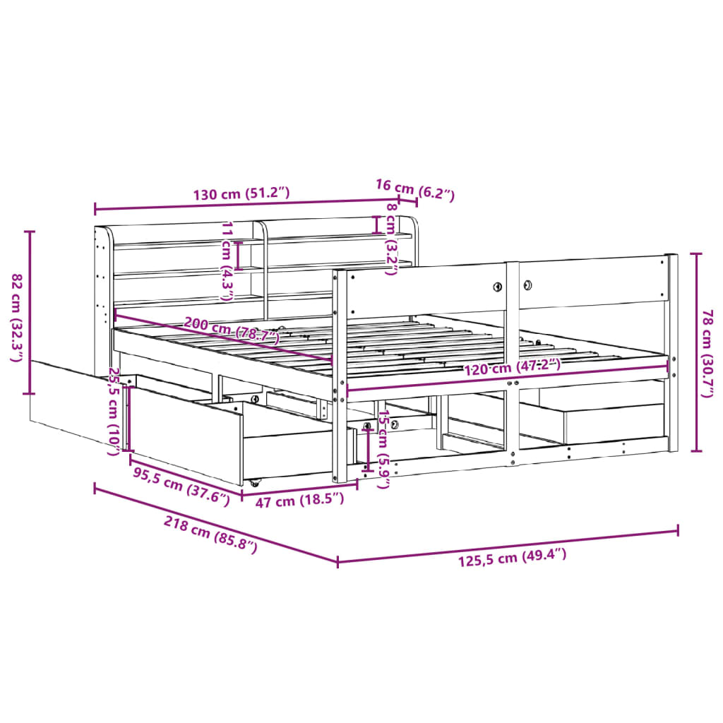 Mit diesem Bett wirst du einen besseren, erholsameren Schlaf genießen! Er ist eine einladende Ergänzung für jedes Schlafzimmer. Stabiles und langlebiges Gestell: Massives Kiefernholz ist für seine Stärke und Haltbarkeit bekannt. Seine gerade Maserung und die charakteristischen Aststellen tragen zu seinem rustikalen Charme bei.Lattenrost für optimale Unterstützung: Der Bettrahmen ist mit einem Lattenrost ausgestattet, der deine Matratze stützt und atmungsaktiv hält.Optimale Ausnutzung des Raums: Dieser Bettrahmen verfügt über vier Schubladen, in denen du Sachen wie zusätzliches Bettzeug, saisonale Kleidung und Spielzeug aufbewahren kannst.Reichlich Stauraum: Das elegante Kopfteil des Bettes verfügt über drei praktische Ablagen, die reichlich Stauraum bieten, um wichtige Sachen nachts griffbereit zu halten.Freistehend: Das freistehende Kopfteil lässt sich mühelos anbringen und bei Bedarf umstellen, ohne eine Befestigung an der Wand zu erfordern. Gut zu wissen:Bei diesem Bett ist keine Matratze im Lieferumfang enthalten. Wir bieten jedoch eine große Auswahl an Matratzen an. Du kannst in unserem Shop nach einer passenden Matratze suchen.