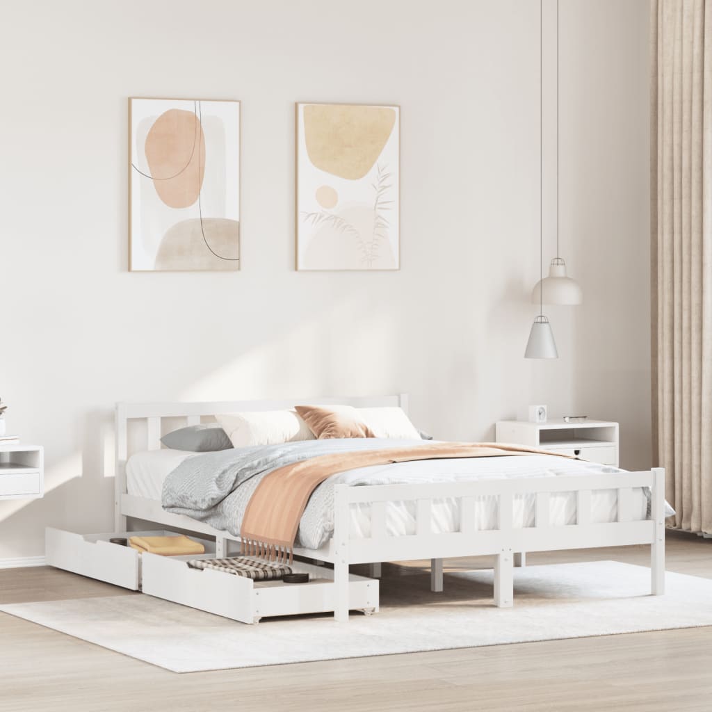 Mit diesem Bett wirst du einen besseren, erholsameren Schlaf genießen! Er ist eine einladende Ergänzung für jedes Schlafzimmer. Stabiles und langlebiges Gestell: Massives Kiefernholz ist für seine Stärke und Haltbarkeit bekannt. Seine gerade Maserung und die charakteristischen Aststellen tragen zu seinem rustikalen Charme bei.Lattenrost für optimale Unterstützung: Der Bettrahmen ist mit einem Lattenrost ausgestattet, der deine Matratze stützt und atmungsaktiv hält.Optimale Ausnutzung des Raumes: Dieser Bettrahmen verfügt über zwei Schubladen, in denen du Sachen wie zusätzliches Bettzeug, saisonale Kleidung und Spielzeug aufbewahren kannst.Leichtgängig: Dank der vier Rollen lässt sich die Unterbettschublade mühelos hineinschieben und herausziehen. Gut zu wissen:Bei diesem Bett ist keine Matratze im Lieferumfang enthalten. Wir bieten jedoch eine große Auswahl an Matratzen an. Du kannst in unserem Shop nach einer passenden Matratze suchen.