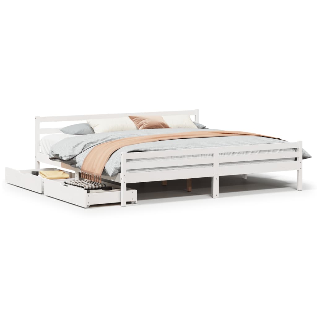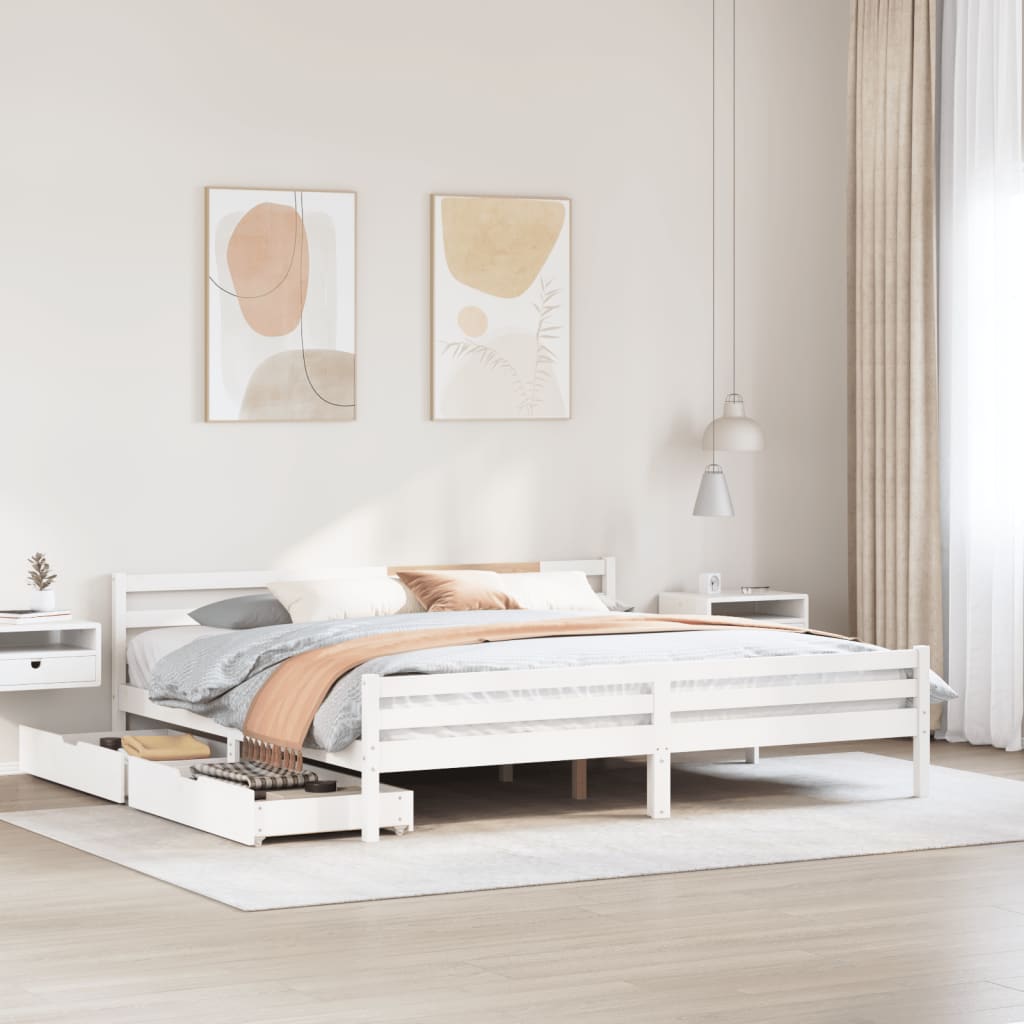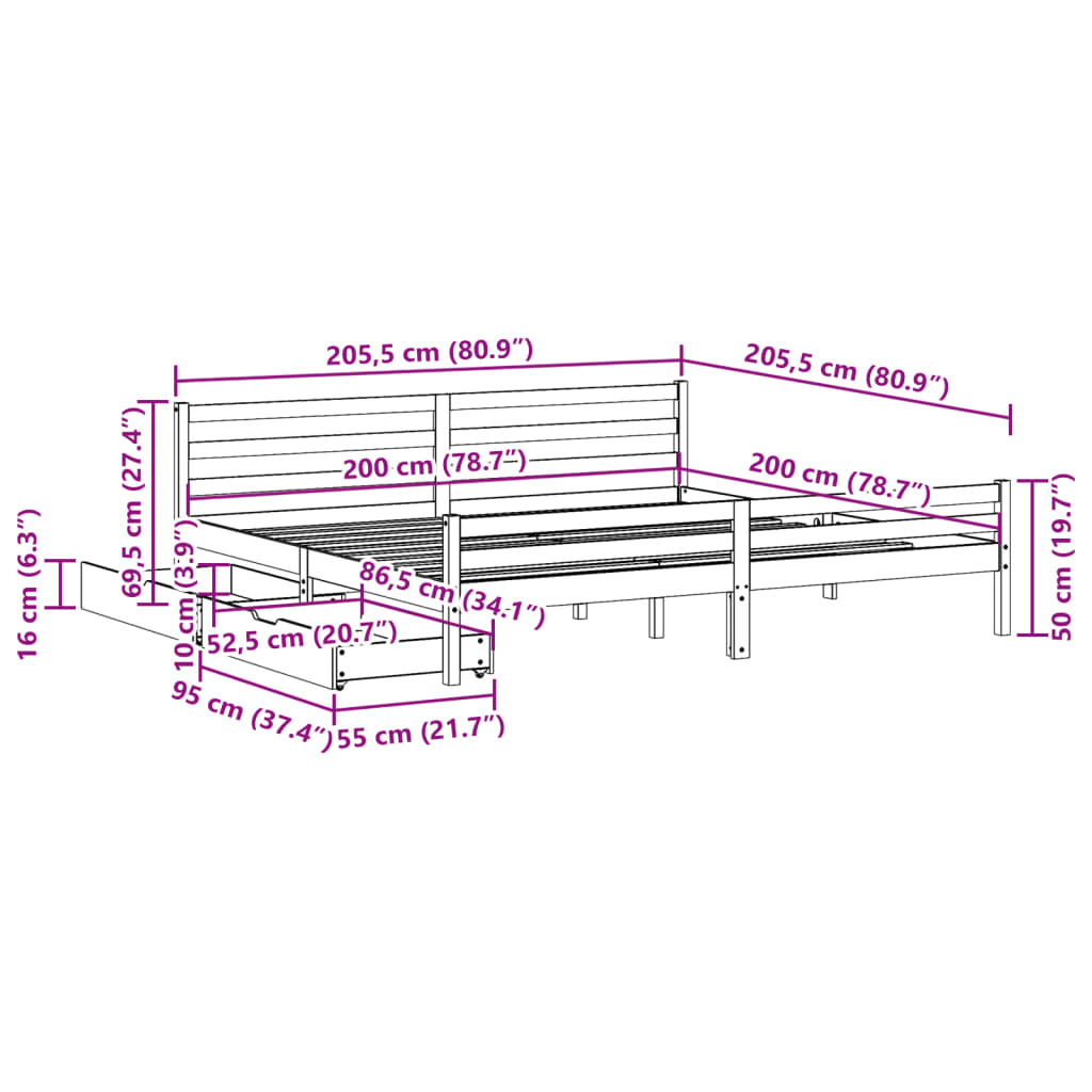 Mit diesem Bett wirst du einen besseren, erholsameren Schlaf genießen! Er ist eine einladende Ergänzung für jedes Schlafzimmer. Stabiles und langlebiges Gestell: Massives Kiefernholz ist für seine Stärke und Haltbarkeit bekannt. Seine gerade Maserung und die charakteristischen Aststellen tragen zu seinem rustikalen Charme bei.Lattenrost für optimale Unterstützung: Der Bettrahmen ist mit einem Lattenrost ausgestattet, der deine Matratze stützt und atmungsaktiv hält.Optimale Ausnutzung des Raumes: Dieser Bettrahmen verfügt über zwei Schubladen, in denen du Sachen wie zusätzliches Bettzeug, saisonale Kleidung und Spielzeug aufbewahren kannst.Leichtgängig: Dank der vier Rollen lässt sich die Unterbettschublade mühelos hineinschieben und herausziehen. Gut zu wissen:Bei diesem Bett ist keine Matratze im Lieferumfang enthalten. Wir bieten jedoch eine große Auswahl an Matratzen an. Du kannst in unserem Shop nach einer passenden Matratze suchen.