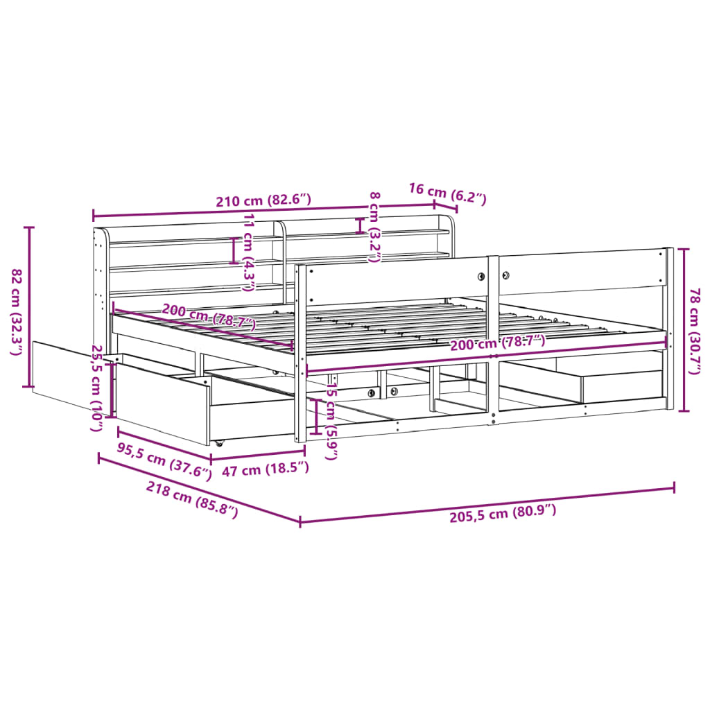 - Abmessungen der Schubladen: 95,5 x 47 x 25,5 cm (L x B x H)
