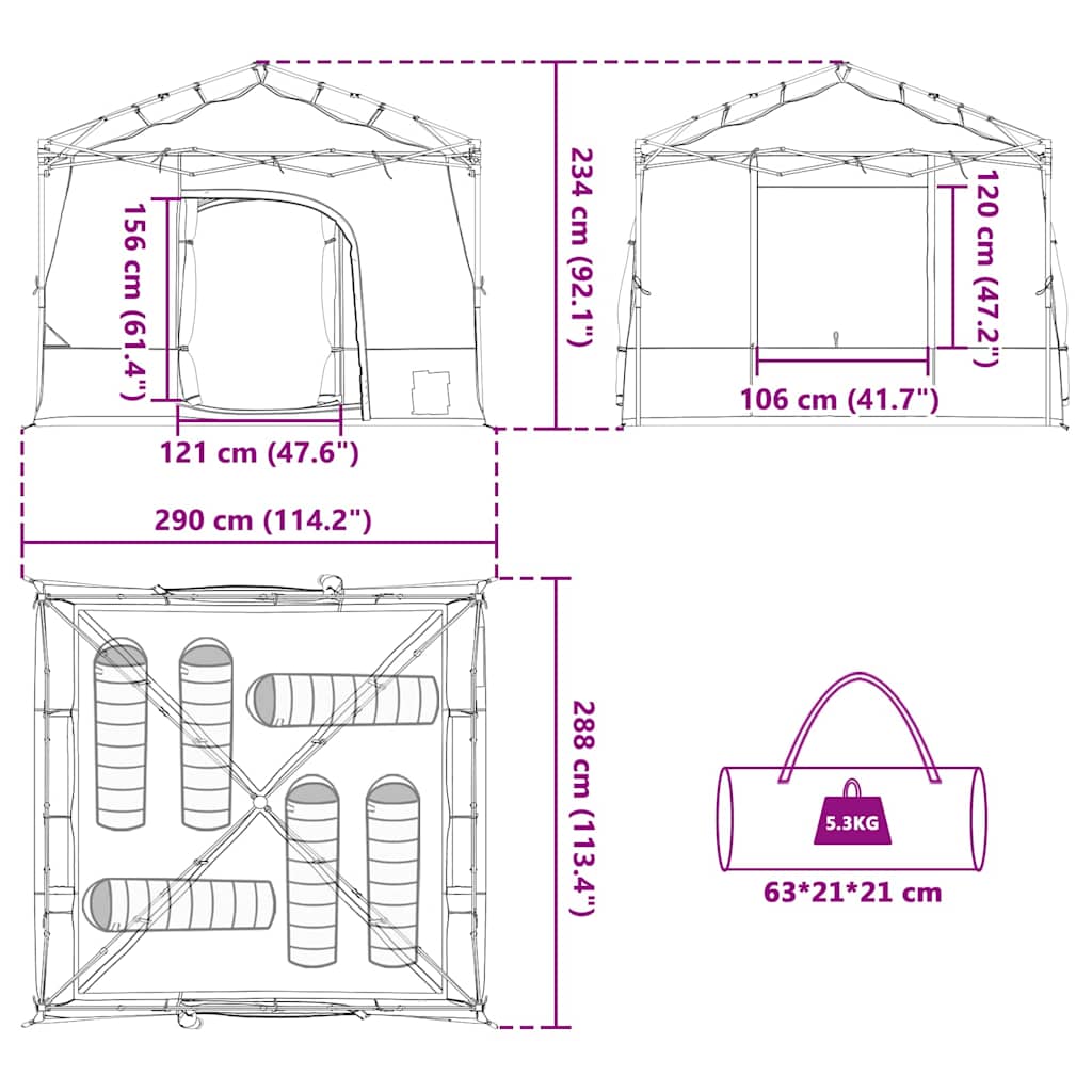 - Gesamtabmessungen: 290 x 288 x 234 cm (L x W x H)
