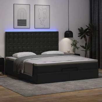 Ottoman-Bett mit Matratze & LEDs Schwarz 160x200 cm Samt