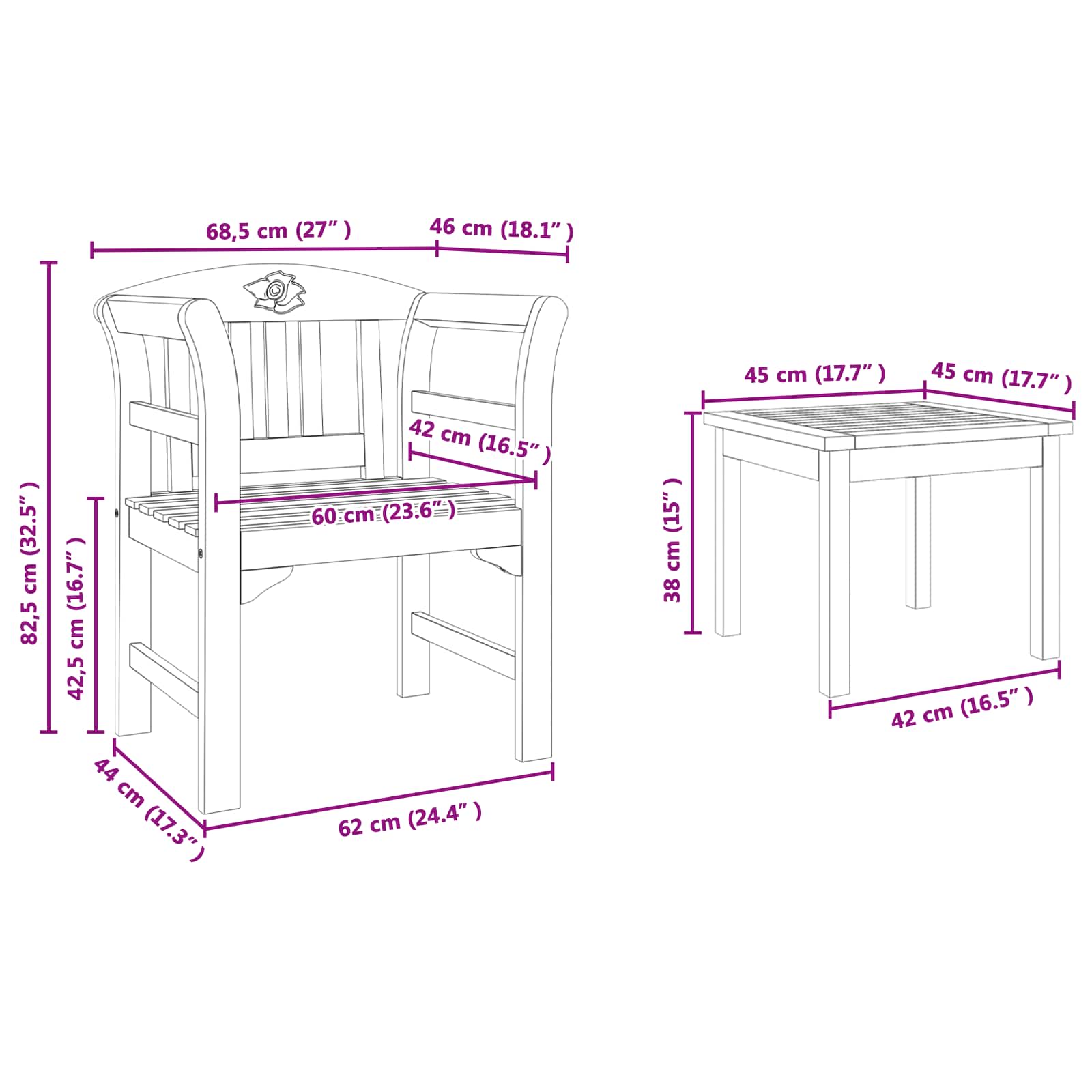 Möbelset mit Kissen 3 pcs Natur Massivholz Akazie