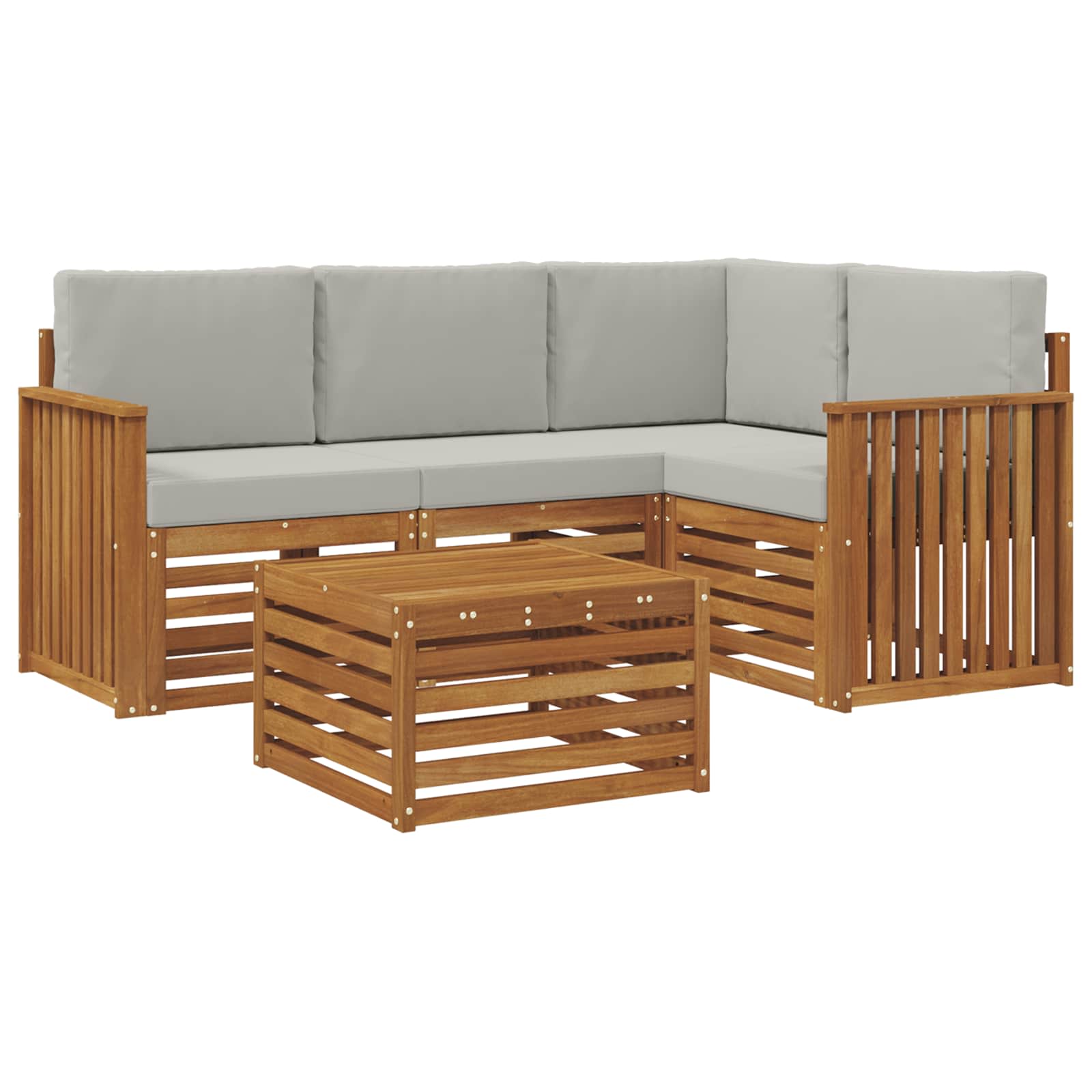 Dieses Outdoor-Sofa-Set vereint stylisches Design und praktische Funktionen und macht jeden Garten, jede Terrasse, jeden Poolbereich oder Hinterhof zum Schauplatz. Hergestellt aus massivem Akazienholz in einem warmen Braunton, strahlt es pure Gemütlichkeit aus. Das modulare Design fördert Kreativität und ermöglicht dir, die Sitzanordnungen easy für verschiedene Events umzugestalten – von gemütlichen Treffen bis hin zu großen Feiern. Material: Das massives Akazienholz sorgt für eine starke und langlebige Sitzlösung für Gartenpartys, Pool-Lounges oder Grillabende im Hinterhof. bekannt für seine tolle Textur und Widerstandsfähigkeit verbindet Akazienholz stylisches Design mit Langlebigkeit und ist perfekt für den Außenbereich. Modulare Konfiguration: Dieses Sofa lässt sich mit verschiedenen Modulen anpassen, um deinem Raum und deinen Vorlieben gerecht zu werden. Egal, ob du die Sofas für lange Gespräche anordnest oder gemütliche Ecken schaffst, die flexible Anordnung steigert die Nutzbarkeit und fördert kreative Ideen. Stylische Armlehnen: Jedes Stück hat Armlehnen aus Akazienholz, die den modernen Look unterstützen und für bequemen Sitz bieten. Ob du ein Buch liest oder plauderst, diese Armlehnen bringen dich zur Entspannung. Designmerkmale: Die modernen, geschlitzten Oberflächen machen das Möbelset echt attraktiv. Das schlichte Design passt super zu bestehenden Außenmöbeln und sorgt für die notwendige Luftzirkulation, was besonders an warmen Tagen toll ist. Pflegehinweise: Halte den coolen Look, indem du das Set einfach mit einem feuchten Tuch abwischst. So bleibt es nicht nur stylisch, sondern auch eine leichte Ergänzung für deinen Außenbereich.