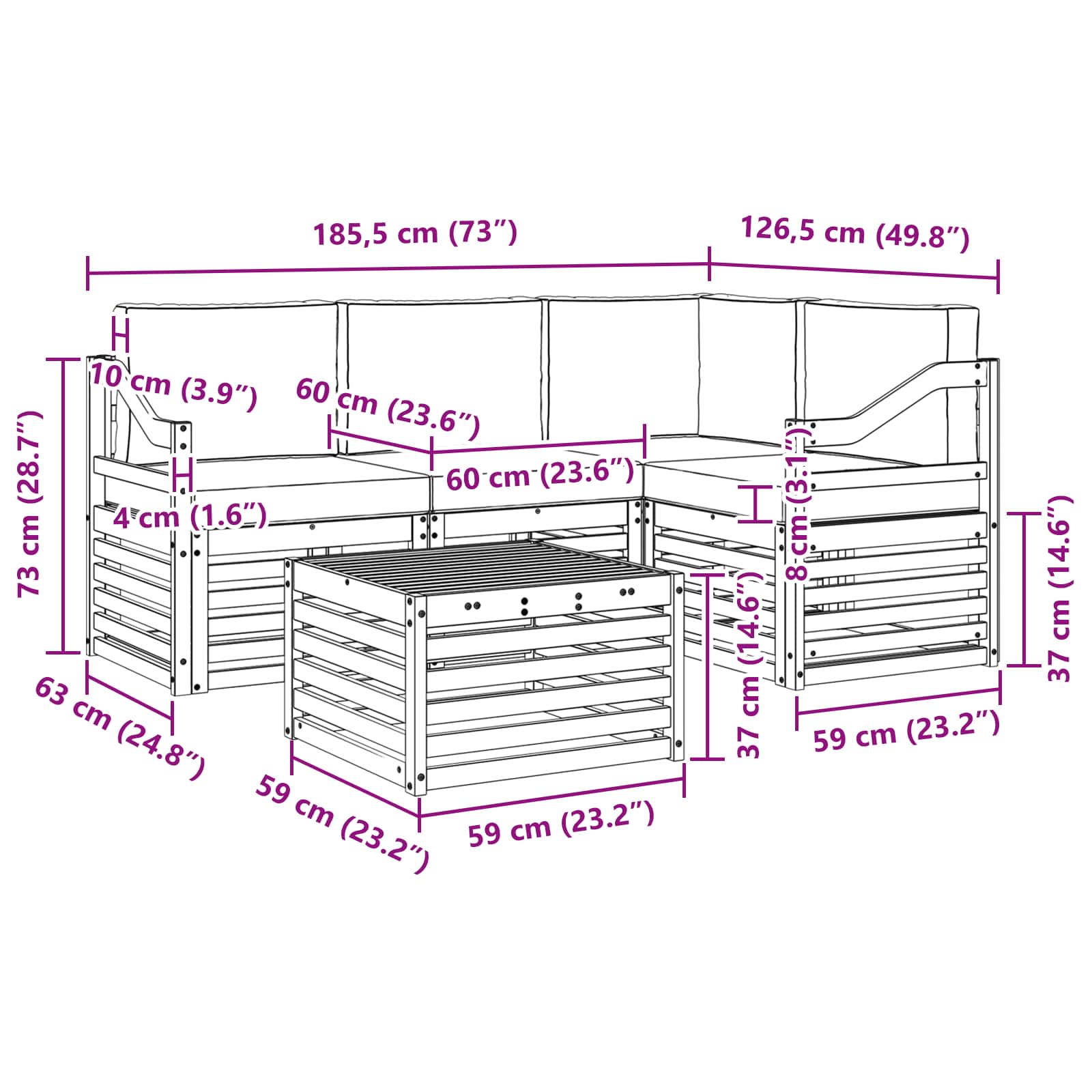 - 5 x Rückenlehnen: 60 x 40 x 10 cm (LxBxH)