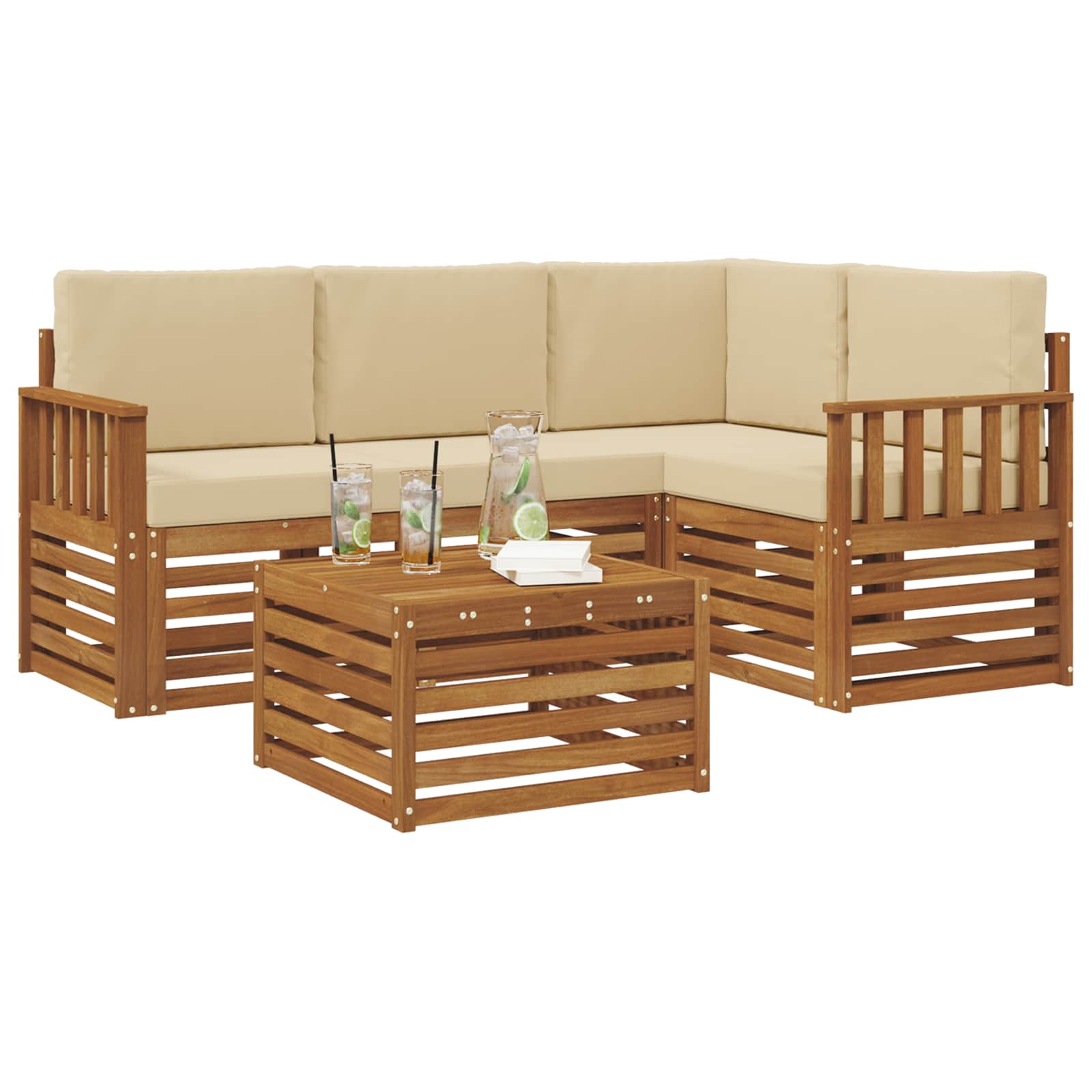 Dieses Outdoor-Sofa-Set vereint stylisches Design und praktische Funktionen und macht jeden Garten, jede Terrasse, jeden Poolbereich oder Hinterhof zum Schauplatz. Hergestellt aus massivem Akazienholz in einem warmen Braunton, strahlt es pure Gemütlichkeit aus. Das modulare Design fördert Kreativität und ermöglicht dir, die Sitzanordnungen easy für verschiedene Events umzugestalten – von gemütlichen Treffen bis hin zu großen Feiern. Material: Das massives Akazienholz sorgt für eine starke und langlebige Sitzlösung für Gartenpartys, Pool-Lounges oder Grillabende im Hinterhof. bekannt für seine tolle Textur und Widerstandsfähigkeit verbindet Akazienholz stylisches Design mit Langlebigkeit und ist perfekt für den Außenbereich. Modulare Konfiguration: Dieses Sofa lässt sich mit verschiedenen Modulen anpassen, um deinem Raum und deinen Vorlieben gerecht zu werden. Egal, ob du die Sofas für lange Gespräche anordnest oder gemütliche Ecken schaffst, die flexible Anordnung steigert die Nutzbarkeit und fördert kreative Ideen. Stylische Armlehnen: Jedes Stück hat Armlehnen aus Akazienholz, die den modernen Look unterstützen und für bequemen Sitz bieten. Ob du ein Buch liest oder plauderst, diese Armlehnen bringen dich zur Entspannung. Designmerkmale: Die modernen, geschlitzten Oberflächen machen das Möbelset echt attraktiv. Das schlichte Design passt super zu bestehenden Außenmöbeln und sorgt für die notwendige Luftzirkulation, was besonders an warmen Tagen toll ist. Pflegehinweise: Halte den coolen Look, indem du das Set einfach mit einem feuchten Tuch abwischst. So bleibt es nicht nur stylisch, sondern auch eine leichte Ergänzung für deinen Außenbereich.