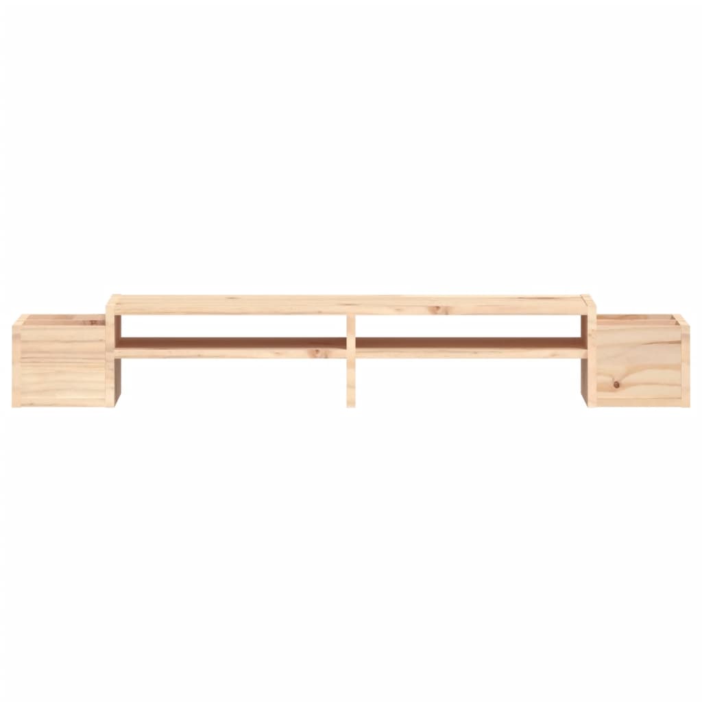 Mit seinem minimalistischen Design verleiht dieser klassische Monitorständer aus Holz deinem Wohnraum eine angenehmen Note. Massives Kiefernholz: Massives Kiefernholz ist ein wunderschönes Naturmaterial. Kiefernholz weist eine gerade Maserung auf und die Aststellen verleihen dem Material seine charakteristische, rustikale Optik.Stabiler Rahmen: Der Holzrahmen sorgt für Robustheit und Stabilität.Stauraum: In den 4 seitlichen Ablagefächern und unter dem Monitorständer kannst du Tastatur, DVD-Player, Spielkonsole, Receiver, Medienträger, Notizbücher, Stifte und ähnliche Gegenstände verstauen.Stressreduktion: Dieser Schreibtischaufsatz kann als Ständer für Monitore und andere Multimedia-Geräte verwendet werden. Die Erhöhung deines Bildschirms entlastet Rücken und Nacken bei der Arbeit am PC. Hinweis:Jedes Produkt wird mit einer Montageanleitung in der Verpackung für eine einfache Montage geliefert.