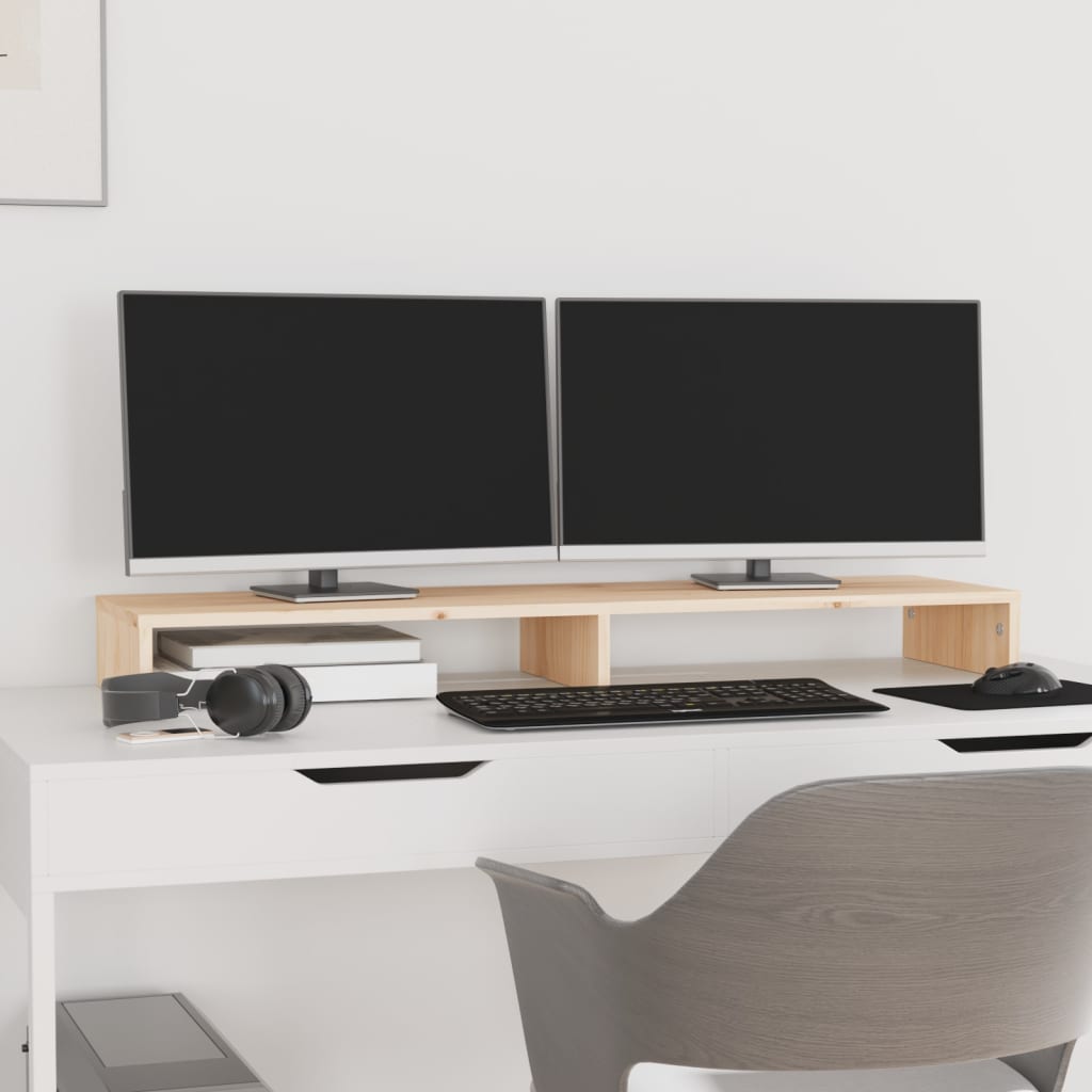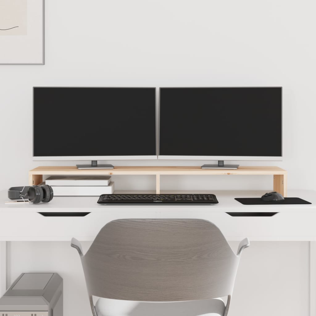 Mit seinem minimalistischen Design verleiht dieser klassische Monitorständer aus Holz deinem Wohnraum eine angenehmen Note. Massives Kiefernholz: Massives Kiefernholz ist ein wunderschönes Naturmaterial. Kiefernholz weist eine gerade Maserung auf und die Aststellen verleihen dem Material seine charakteristische, rustikale Optik.Stabiler Rahmen: Der Holzrahmen sorgt für Robustheit und Stabilität.Stauraum: Unter dem Monitorständer finden Tastatur, DVD-Player, Spielkonsole, Streaming-Geräte, Receiver, Medienträger, Notizbücher, Stifte und ähnliche Gegenstände Platz.Stressreduktion: Dieser Schreibtischaufsatz kann als Ständer für Monitore und andere Multimedia-Geräte verwendet werden. Die Erhöhung deines Bildschirms entlastet Rücken und Nacken bei der Arbeit am PC. Hinweis:Jedes Produkt wird mit einer Montageanleitung in der Verpackung für eine einfache Montage geliefert.