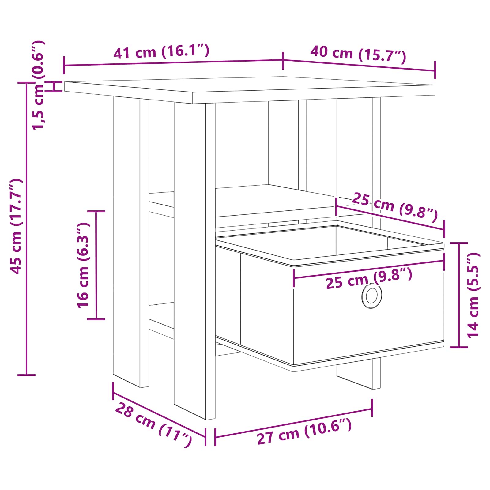 - Gesamtabmessungen: 41 x 40 x 45 cm (B x T x H)