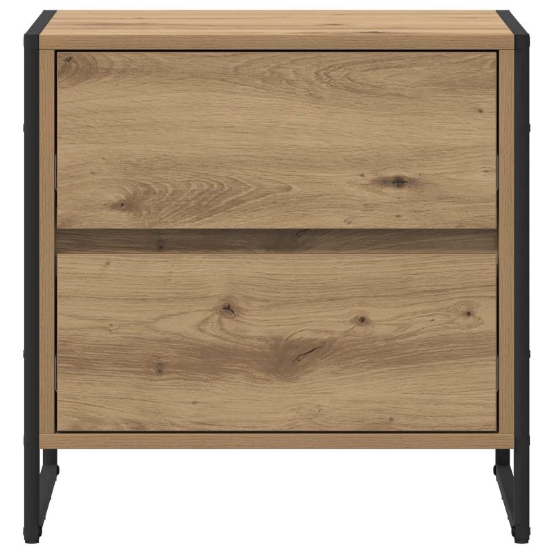 Dieser industrielle Nachttisch bringt lässige Eleganz ins moderne Schlafzimmer. Er verbindet praktische Ästhetik mit einem coolen, urbanen Look. Mit Holzwerkstoff und Stahl setzt er auf Funktionalität und Design und ist damit ideal für alle, die etwas Modernes und Praktisches suchen. Sein industrieller Stil unterstreicht die rohen Materialien und spiegelt den Charme eines Lagerhauses wieder. Materialien: Vollständig aus Holzwerkstoff gefertigt, hat der Nachttisch eine robuste Oberfläche, die perfekt für jeden Tag ist. Das glatte Finish sorgt für ein modernes Aussehen, das leicht zu reinigen ist. Inklusive Komponenten: Eine geräumige Schublade und ein stabiles Grundgerüst aus Holzwerkstoff bieten genug Stauraum und Zuverlässigkeit. In der Schublade kannst du persönliche Dinge ordentlich verstauen, während die stabilen Stahlbeine für enorme Stabilität sorgen. Merkmale/Funktion/Design: Mit einem praktischen, industriellen Touch hat dieser Nachttisch eine leicht zugängliche Schublade für Stauraum und Deko. Die Langlebigkeit der Materialien macht ihn zu einem zuverlässigen Begleiter im Alltag. Empfohlene Verwendung: Ideal für Schlafzimmer, die eine einfache Ablage für Lampen oder Bücher brauchen. Durch die passgenauen Abmessungen ist er perfekt neben deinem Bett oder als kleiner Beistelltisch in deinem Wohnraum. Pflege & Wartung: Halte das Material, indem du es mit einem trockenen Tuch abwischst; verzichte auf scheuernde Reiniger oder scharfe Chemikalien. Das sind einfache Schritte, um die Langlebigkeit seines Aussehens zu sichern.