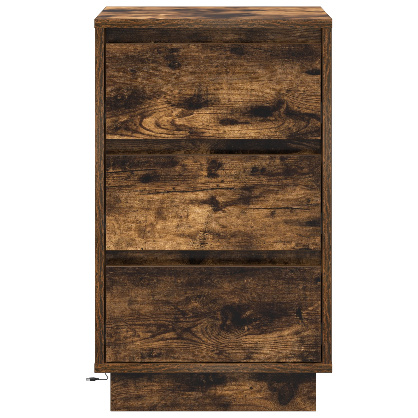 Füge deinem Schlafzimmer mit dem Nachttisch einen Hauch von Eleganz hinzu – das schlanke Design in Geräuchert Eiche macht's möglich. Dieser praktische Nachttisch hat zwei Schubladen und LED-Lichter, perfekt für dein Bett.