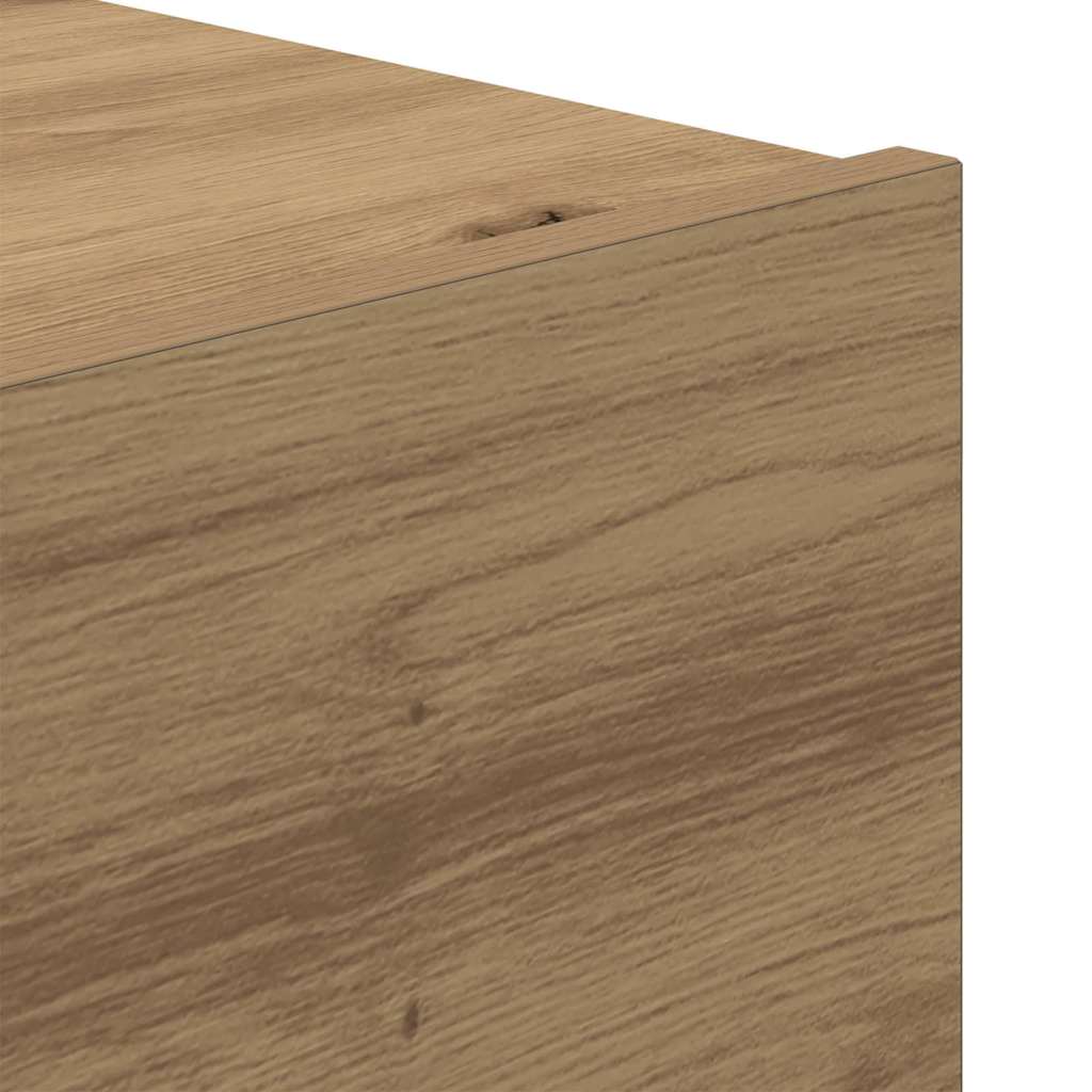 Dieser Nachttisch hat eine schicke Artisan Eiche Oberfläche, die perfekt zu seiner glatten rechteckigen Form passt und ihn zur idealen Ergänzung jeder modernen Schlafzimmerdekoration macht. Entworfen für Funktion und Stil, ist dieser kompakte Nachttisch ideal für eine Lampe, persönliche Sachen oder ein Getränk, während du dich zum Entspannen bereit machst. Viel Stauraum: Der Nachttisch hat zwei Schubladen aus solidem Eichenholz, die dir viel Platz für Bücher, Brillen und andere nächtliche Essentials bieten. Elegantes Design: Der moderne Stil dieses Nachttisches, zusammen mit seiner natürlichen Holzoberfläche, schafft eine warme Atmosphäre, die deine Schlafzimmerdekoration wertvoller macht und sowohl zu modernen als auch zu klassischen Stilen passt. Robust und Langlebig: Hergestellt aus massivem Eichenholz, ist dieser Nachttisch langlebig und hält dem täglichen Gebrauch stand, während er sein schönes Aussehen bewahrt. Vielseitig einsetzbar: Wo auch immer du ihn nutzt – er ist perfekt für Schlafzimmer, kann aber auch als schicker Beistelltisch in Wohnräumen oder Gästezimmern eingesetzt werden. Pflegeleicht: Seine glatte matte Oberfläche lässt sich einfach mit einem feuchten Tuch abwischen, um gut auszusehen.