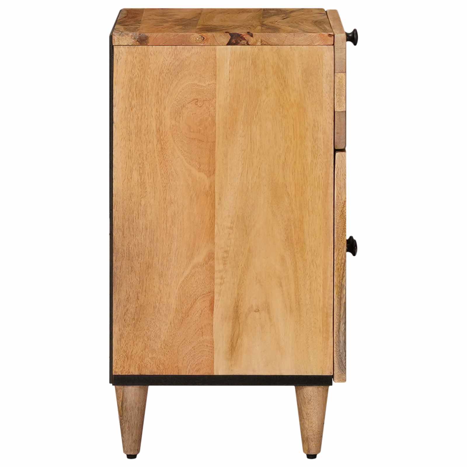 Dieser Nachttisch ist die perfekte Mischung aus Funktionalität und Stil – dein idealer Begleiter für das Schlafzimmer. Die schlanke rechteckige Form und das braune Finish passen zu verschiedenen Einrichtungsstilen und bringen Wärme und Eleganz in deinen Raum. Aus solidem Mangoholz gefertigt, ist er dazu konzipiert, eine Lampe, einen Wecker oder persönliche Dinge aufzunehmen – so hast du alles immer griffbereit. Das durchdachte Design verbindet Praktikabilität und Ästhetik und macht ihn zur tollen Wahl für jedes Schlafzimmer. Qualitätsmaterial: Gefertigt aus massivem Mangoholz, bietet dieser Nachttisch außergewöhnliche Haltbarkeit und zeitlosen Charme. Die natürliche Maserung des Holzes sorgt für einen rustikalen Touch und macht das Stück stark und schön. Der robuste Rahmen garantiert Stabilität und verspricht Langlebigkeit und Zufriedenheit. Funktionales Design: Der Schrank passt durch seine glatte rechteckige Form perfekt in dein Schlafzimmer. Mit einer kompakten Größe von 50 x 33 x 60 cm bietet er eine zuverlässige Oberfläche für deine nächtlichen Essentials und spart gleichzeitig Platz. Er ist ideal für kleine und große Schlafzimmer und vereint Stil und Bequemlichkeit. Stauraumlösungen: Ausgestattet mit praktischen Schubladen und Türen, die genug Stauraum bieten. Alles ist leicht erreichbar, von Büchern bis hin zu nächtlichen Must-haves, so dass du deinen Platz optimal nutzen kannst. Das durchdachte Design sorgt dafür, dass alles ordentlich verstaut werden kann. Inneneinsatz: Nur für drinnen gedacht, schafft dieser Nachttisch eine warme und einladende Atmosphäre in deinem Schlafzimmer. Sein attraktives braunes Finish passt zu den meisten Stilen und sorgt für ein harmonisches Gesamtbild, das sowohl elegant als auch funktional ist. Montage erforderlich: Der Schrank muss montiert werden – alle Teile sind enthalten. So kannst du ihn einfach zusammenbauen und hast ein tolles DIY-Erlebnis. Nach dem Aufbau wird er zum Hingucker in deinem Schlafzimmer und erhöht die Benutzerfreundlichkeit und die ästhetische Anziehungskraft.