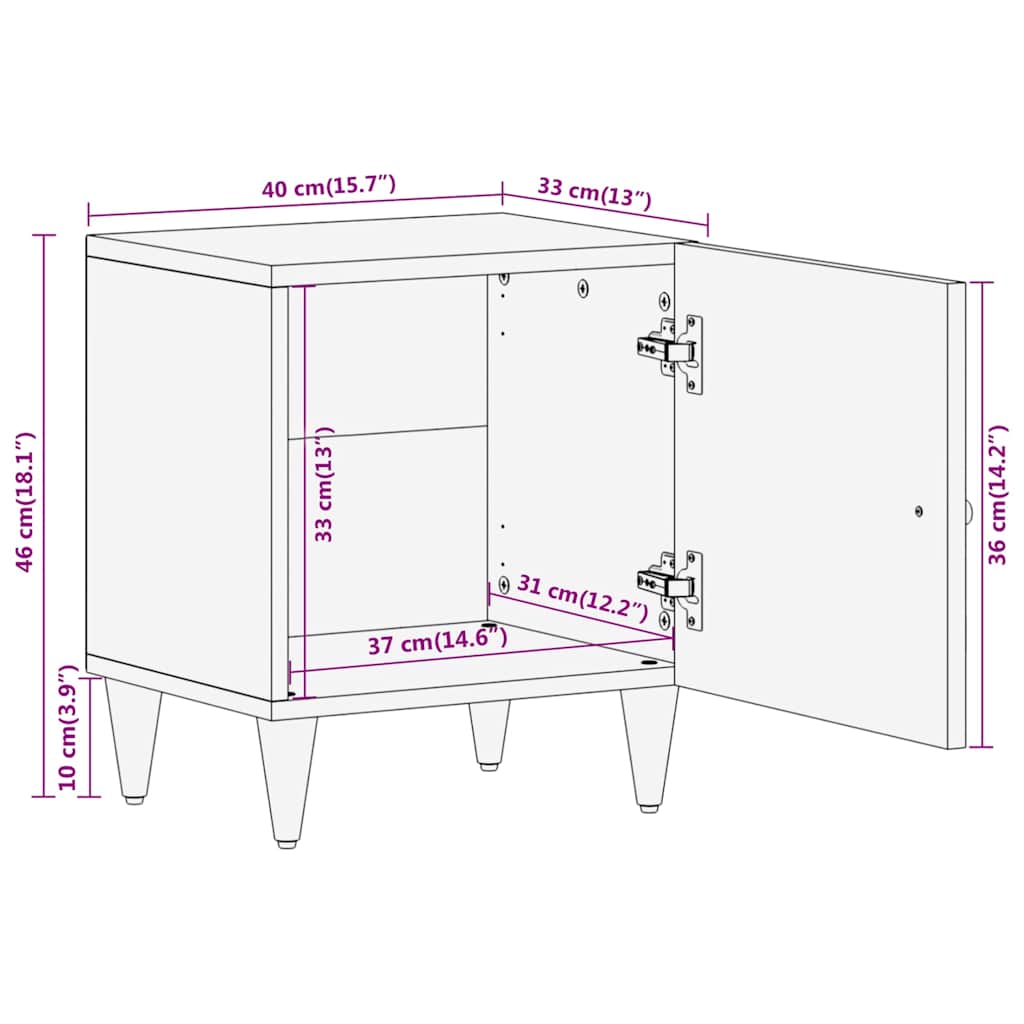 Diese Nachttische mit elegantem Design sind eine zeitlose Ergänzung deiner Inneneinrichtung. Massives Mangholz: Massives Mangoholz ist ein robustes, tropisches Hartholz, aus dem sich robuste Möbel herstellen lassen. Seine optisch ansprechende Holzmaserung macht jedes Möbelstück zu einem Unikat. Der Schrank ist aus massivem Mangoholz gefertigt und daher langlebig und stabil.Praktische Tür: Sorge für Ordnung in deinem Wohnraum, indem du wichtige Kleinigkeiten in diesem Nachttisch hinter der Tür versteckst.Stabile Oberplatte: Die Oberplatte des Beistellschranks bietet den perfekten Platz, um Dekoartikel, Bilderrahmen und Topfpflanzen zur Schau zu stellen.Möbelbeine aus Holz: Die Holzbeine verleihen dem Möbelstück eine natürliche und angenehme Optik und sorgen gleichzeitig für Stabilität. Der Schrank fügt sich daher harmonisch in jede Inneneinrichtung ein.Handgeschnitztes Design: Mit einem handgeschnitzten Muster versehen, bringt der Nachttisch einen eleganten Charmes in dein Interieur und wird überall ein echter Hingucker sein. Gut zu wissen:Jedes Stück ist ein Unikat, das in Farbe und Maserung variiert. Die Lieferung erfolgt in zufälliger Reihenfolge, wodurch die Exklusivität und Individualität deines Produkts gewährleistet wird.