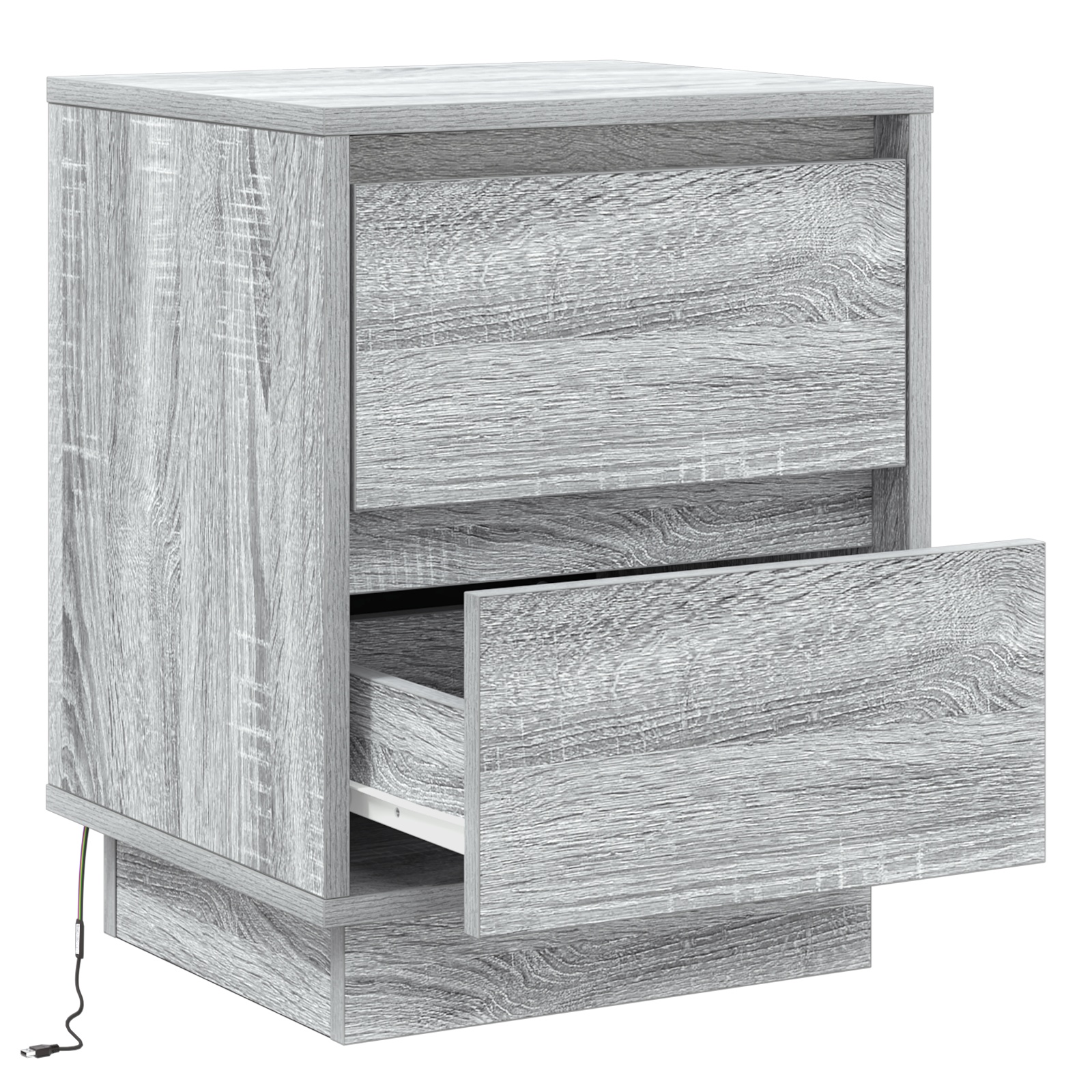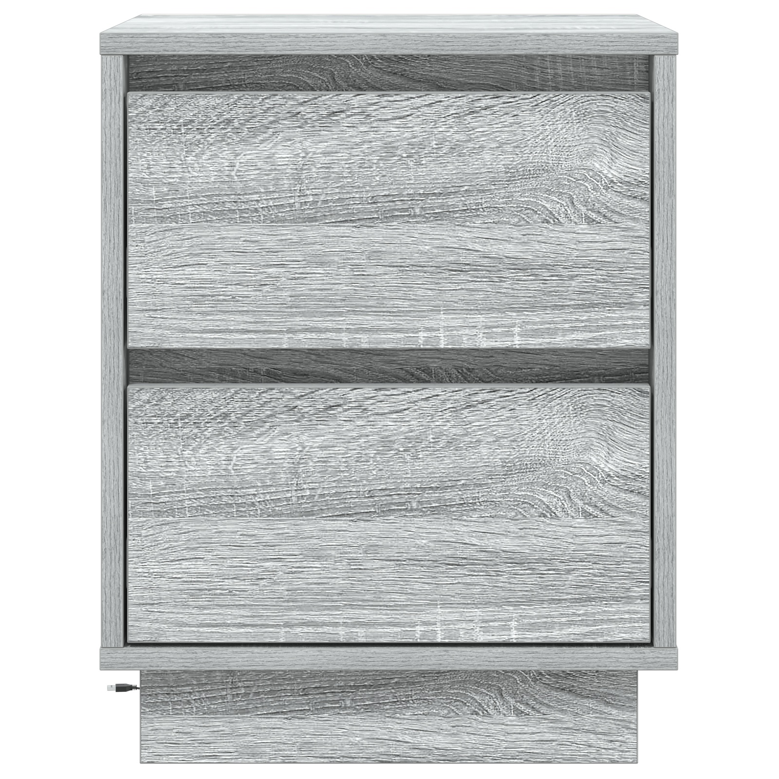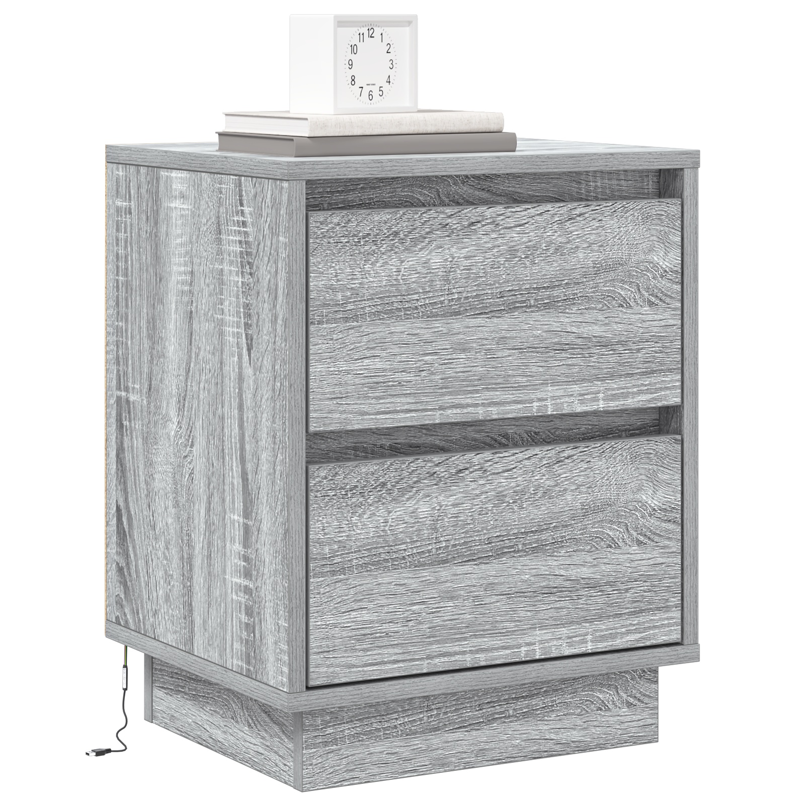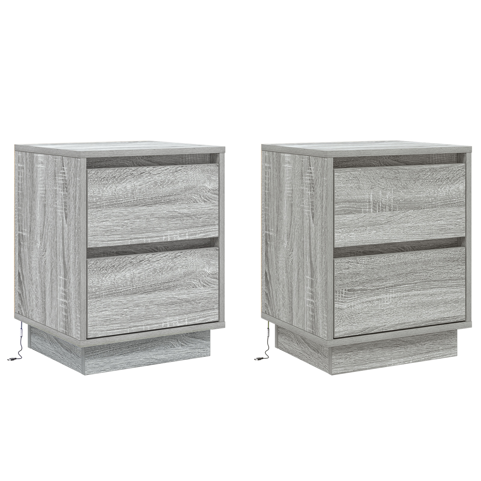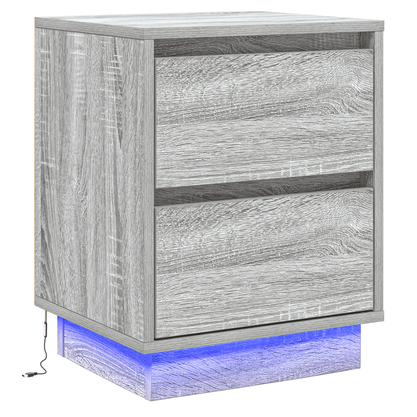 Dieses Set von Nachttischen bringt modernen Stil und Funktionalität zusammen und ist ein Must-have für dein Schlafzimmer. Die stilvolle grau-sonoma Oberfläche sieht nicht nur gut aus, sondern bietet auch eine praktische Ablage für deine wichtigen Dinge und sorgt dafür, dass dein Raum ordentlich und stylisch bleibt. LED Lichtleiste: Mit einer lebhaften LED Lichtleiste bringen diese Nachttische einen einzigartigen Glanz in dein Schlafzimmer und machen nächtliche Aktivitäten angenehmer. Die Beleuchtung verbessert die Sicht und schafft eine angenehme Atmosphäre, die perfekt ist zum Entspannen nach einem langen Tag. Traditionelles Schubladendesign: Mit vier geräumigen Schubladen und charmanten klassischen Griffen ist der Zugang zu deinen Sachen einfach. Dieses Design verleiht deinem modernen Raum einen zeitlosen Touch. Langlebige Konstruktion: Hergestellt aus zuverlässigem Holzwerkstoff, sind diese Schränke auf Langlebigkeit ausgelegt und bieten über Jahre hinweg soliden Stauraum. Außerdem ist die glatte Oberfläche kinderleicht zu reinigen. Optimaler Stauraum: Mit vielen Schubladen kannst du persönliche Gegenstände, Bücher oder Nachttisch-Essentials einfach organisieren und deinen Raum ordentlich halten. Jede Schublade misst 30 cm lang, 35 cm breit und 10,5 cm hoch - so bringt sie Funktion und Stil perfekt in Einklang. Einfache Montage: Diese Schränke sind darauf ausgelegt, dass du sie schnell zusammenbaust und sofort nutzen kannst. Du brauchst nur eine Person und einen Schraubendreher für die Montage.