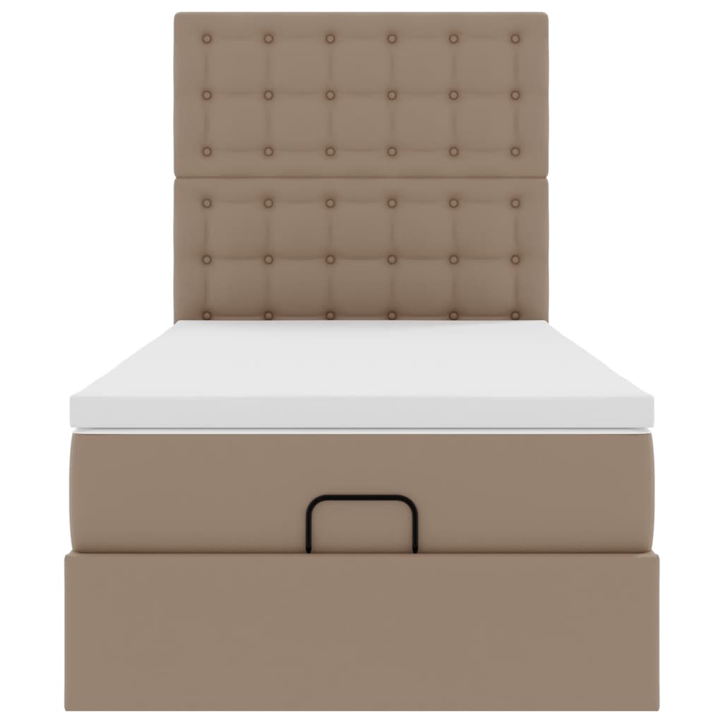 Genieße mit diesem Ottomanbett mit Matratze eine erholsame Nachtruhe! Es bietet dir sowohl eine Stauraumlösung als auch ein komfortables Schlaferlebnis. Langlebig und pflegeleicht: Kunstleder ist ein äußerst langlebiges und schmutzabweisendes Material, das sich mit einem feuchten Tuch leicht reinigen lässt. Durch die glatte Oberfläche weist es die Eleganz von Echtleder auf.Taschenfederkernmatratze: Diese Matratze hat einzelne Taschenfedern, die unabhängig voneinander arbeiten. Somit bietet sie dir optimalen Halt, indem sie auf Druckstellen in jedem Bereich unabhängig reagieren. Diese Konstruktion verhindert das "Zusammenrollen" und reduziert die Bewegungsübertragung im Vergleich zu alten Federkernmatratzen. Jede Taschenfeder stützt die Körper-Druckstellen individuell.Großer Stauraum unter dem Bett: Dank des hydraulischen Hebemechanismus bietet der Bettrahmen reichlich Stauraum unter dem Bett, sodass der Platz maximiert wird, ohne zusätzliche Bodenfläche zu beanspruchen. Mit einem einfachen Zug am Griff hebt sich der Lattenrost sanft an, sodass du deine Gegenstände schnell und mühelos herausholen kannst.Komfortable Matratzenauflage: Die Auflage verbessert den Halt und den Komfort mit ihrer weichen, atmungsaktiven Oberfläche und verlängert gleichzeitig die Lebensdauer deiner Matratze. Der abnehmbare Bezug ermöglicht ein einfaches Waschen, was die Pflege der Matratze zum Kinderspiel macht.LED-Beleuchtung für ein angenehmes Ambiente: Dieses Bett verfügt über LED-Leuchten, die einfach eingestellt werden können, um eine persönliche Lichtshow zu kreieren. Du kannst die Modi, Farben und Helligkeit anpassen, um das Ambiente in deinem Wohnraum zu verbessern. Gut zu wissen:Das Produkt verfügt über einen USB-Anschluss, für den eine zertifizierte 5V-USB-Stromquelle erforderlich ist (nicht im Lieferumfang enthalten).Aus hygienischen Gründen kann die Matratze nicht zurückgegeben werden, wenn die Verpackung entfernt oder geöffnet wurde.Nur der Teil mit dem Symbol kann geschnitten werden und nur der Teil mit dem USB funktioniert auch weiterhin.