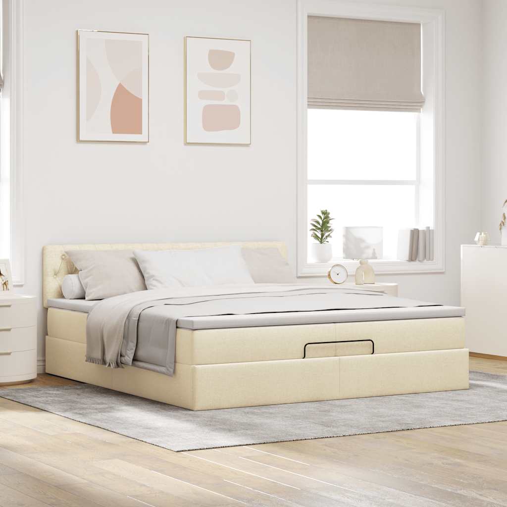 Ottoman-Bett mit Matratze Creme 200x200 cm Stoff