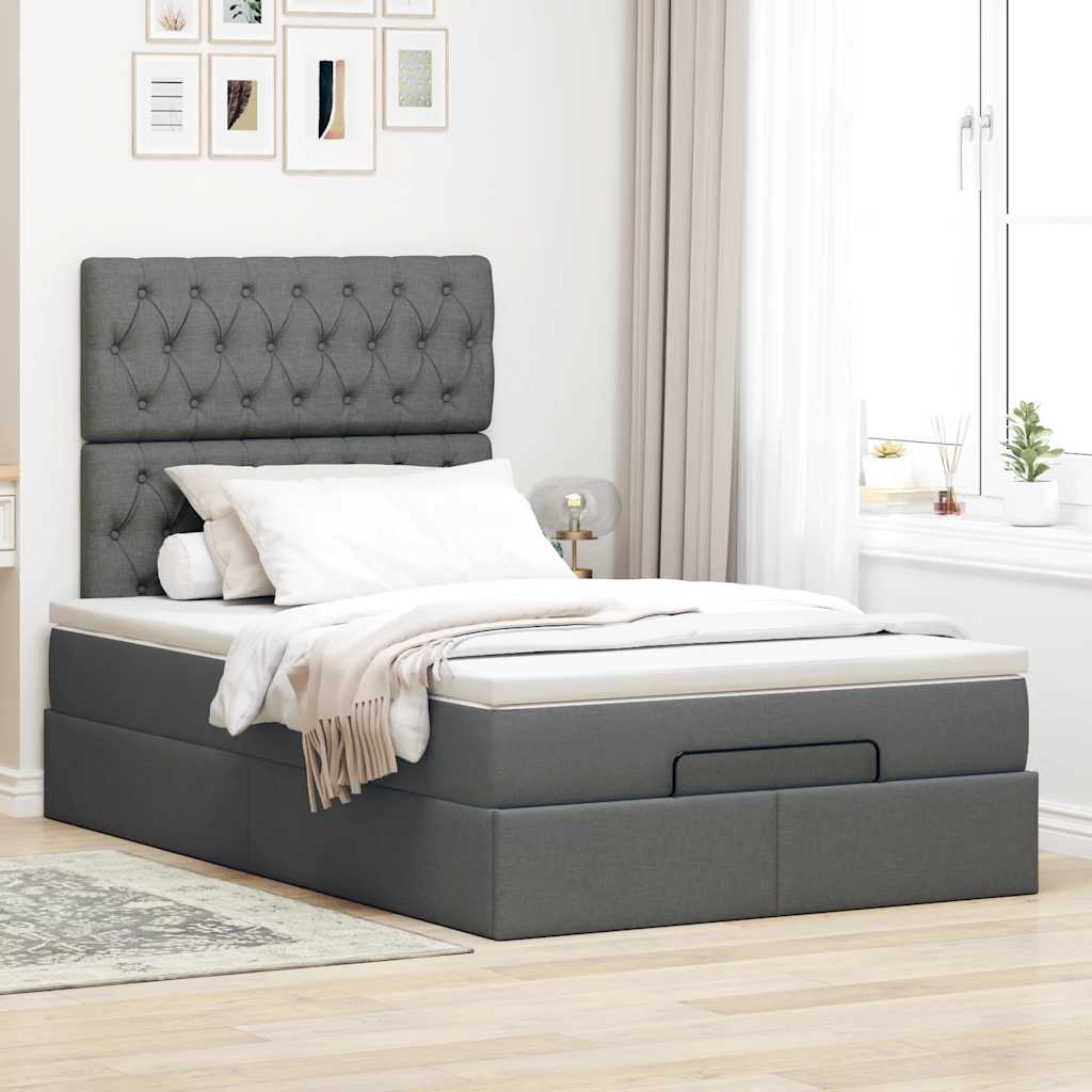 Ottoman-Bett mit Matratze & LEDs Dunkelgrau 120x200 cm Stoff
