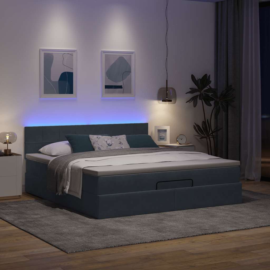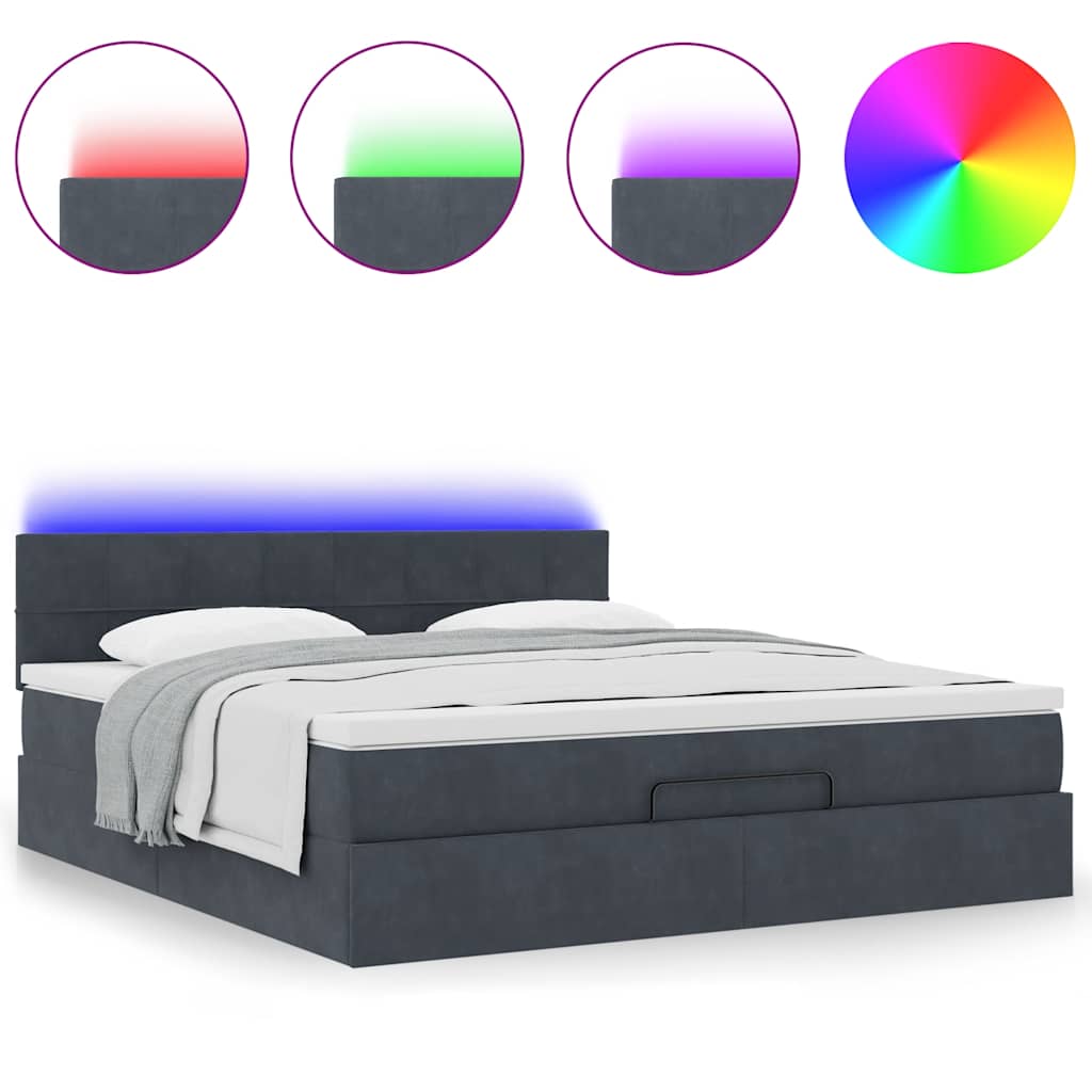 Ottoman-Bett mit Matratze & LEDs Dunkelgrau 180x200 cm Samt